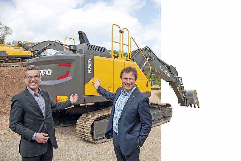 Für Christian Krauskopf und Matthias Keller hat Konz als »Standort mit globaler Funktion« in den vergangenen Jahren zunehmend an Bedeutung gewonnen, wie auch die Investitionen von rund 150 Mio. Euro in den letzten zehn Jahren zeigten. Maßgeblich verantwortlich dafür ist die Entscheidung des Konzerns gewesen, von 2005 an die Bagger in den Klassen von 16 t bis 25 t in Konz zu produzieren, während die größeren Bagger von der Typenbezeichnung EC 300 E aufwärts in Südkorea hergestellt werden. »Somit werden an diesem Standort von heute rund 900 Mitarbeitern Mobil- und Raupenbagger sowie kompakte Radlader für den Weltmarkt produziert«, so die beiden Geschäftsführer.