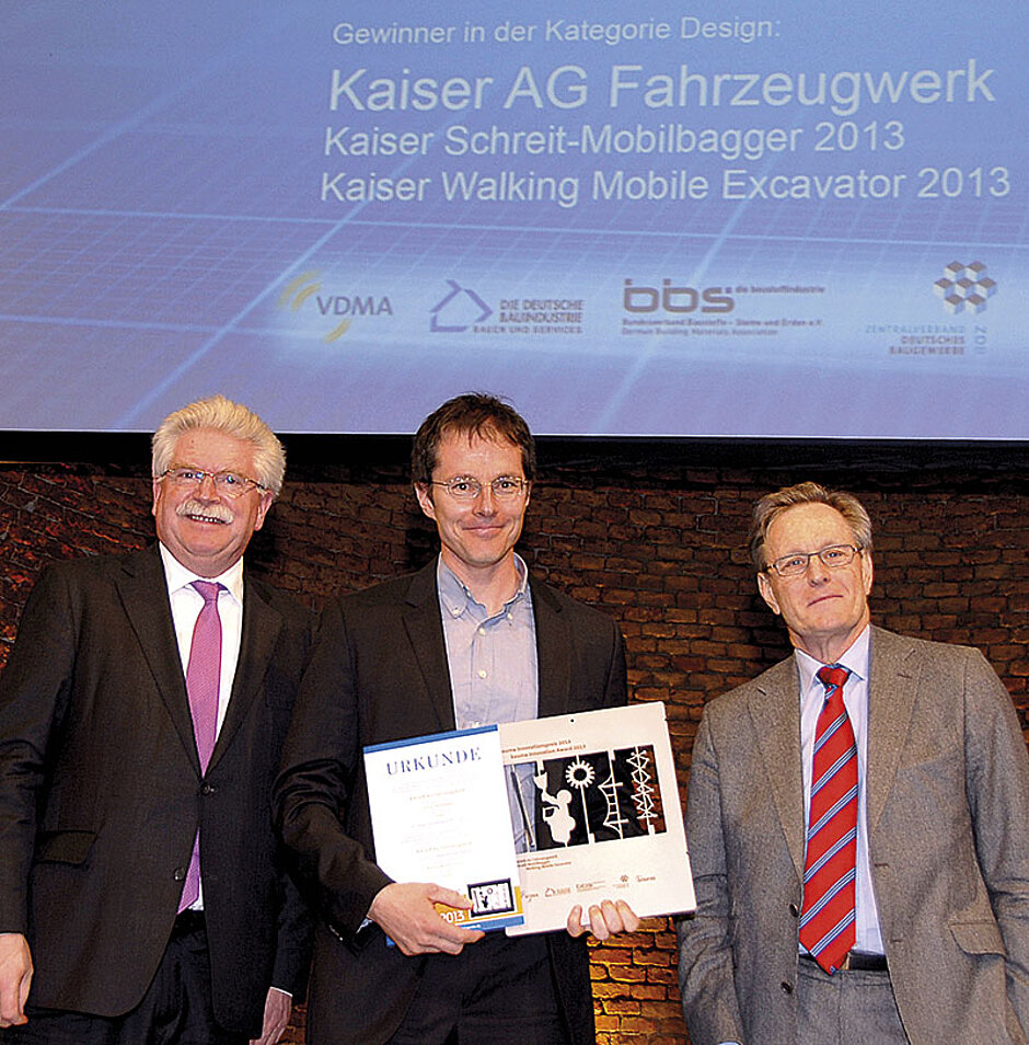 Dementsprechend selbstbewusst hat sich die Kaiser AG dem Wettbewerb um den Bauma-Innovationspreis gestellt, »denn wir wussten«, so Markus Kaiser, »dass wir mit unserer neuen Schreitbagger-Generation gute Chancen haben würden.« Gleichwohl sei man nach der Nominierung positiv überrascht gewesen, sich gegen so große Konkurrenz wie Liebherr oder Wacker Neuson durchsetzen zu können. »Dass wir diese neutrale Auszeichnung gewonnen haben, freut mich sehr«, sagt Markus Kaiser, »und macht unsere Mitarbeiter sehr stolz.« Auch über die Reaktion der Mitbewerber bei der Preisverleihung in der Allerheiligen-Hofkirche der Münchner Residenz hat er sich gefreut. »Sie haben uns gratuliert und gesagt, das habt ihr verdient.«Für Markus Kaiser ist der Bauma-Innovationspreis auch ein Beweis dafür, dass die Firmenphilosophie die richtige ist. »Seit es dieses Unternehmen gibt, sind es immer die technischen Differenzierungen und Innovationen gewesen, durch die wir uns weiterentwickelt haben«, sagt der 45-jährige studierte Betriebswirtschaftler. Was 1913 mit der Patentanmeldung auf eine Webmaschine durch seinen Großvater Josef Kaiser begann, wurde durch seinen Vater Josef Kaiser jun. auf eine neue Ebene gehoben. Mit der Produktion von Saugfässern für die Landwirtschaft stieg Kaiser 1953 in die industrielle Fertigung ein, bereits 1963 folgte der Bau des ersten Kanalreinigungsfahrzeugs, kurze Zeit später erfand man den Schreitbagger. Weil Liechtenstein und die angrenzende Schweiz als Absatzmärkte viel zu klein sind, war man zudem schon früh dazu gezwungen, das Unternehmen international auszurichten. »Heute prägen wir mit unseren zwei Produkten Kanalreinigungsfahrzeuge und Schreitbagger diese Nischenmärkte maßgeblich«, sagt Markus Kaiser nicht ohne Stolz.