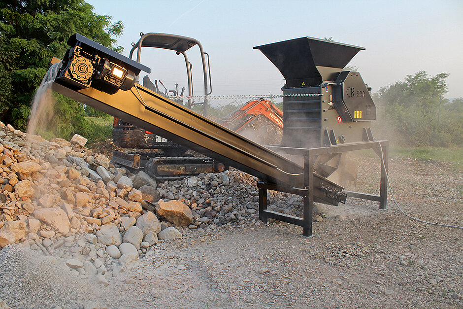 Die Philosophie dahinter ist einfach, aber wirkungsvoll: Warum den Schutt bewegen, wenn man ihn gleich vor Ort veredeln kann? »Vor Ort brechen« ist dabei mehr als nur ein technischer Vorgang, es ist ein Paradigmenwechsel. Es geht um Effizienz, aber auch um ökologisches und wirtschaftliches Denken. Denn wer Beton, Ziegel und Mischschutt direkt am Einsatzort zerkleinert, spart nicht nur CO₂, sondern auch bares Geld. Modelle wie der »CR600« liefern bis zu 10 m³/h Durchsatzleistung bei einer Endkorngröße von 25 bis 80 mm, individuell einstellbar. Mit seinem Brecherspalt von 600 x 300 mm, 11 kW-Antrieb, kompakten 1,5 t Gewicht und einem geringen Geräuschpegel unter 75 dB(A) ist er nicht nur leistungsfähig, sondern auch alltagstauglich, sogar in sensiblen Umgebungen.