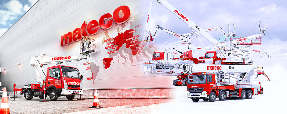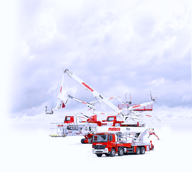Die mateco GmbH hat über 12.000 Arbeitsbühnen in mehr als 700 verschiedenen Ausführungen im Programm. Arbeitshöhen von 4,90 bis 90 Meter Höhe, seitliche Reichweiten bis zu 43 Metern und Traglasten bis zu 7.200 kg sind problemlos zu realisieren.