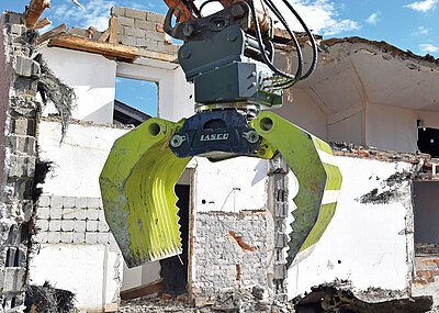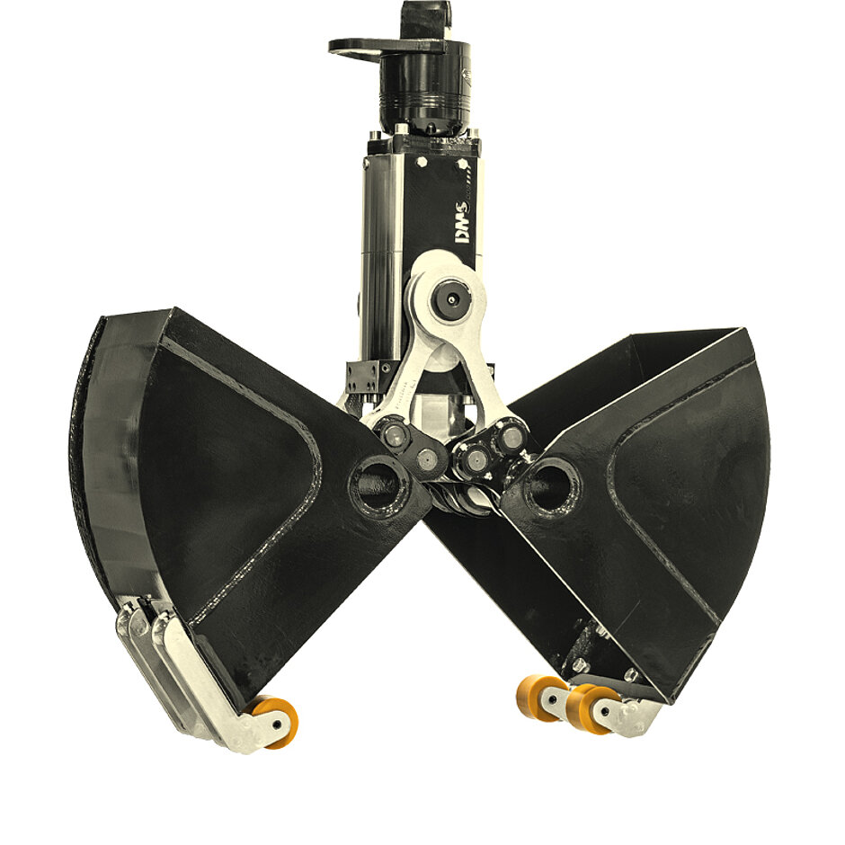 Der mit dem »German Design Award« ausgezeichnete DMS-Grabgreifer GS-P gilt als ein Ergebnis konsequenter Weiterentwicklung anhand von Kundenwünschen und -bedürfnissen. Sowohl für Ladekrane als auch für Hydraulikbagger ist der Grabgreifer GS-P der nach Anbieterangaben erste seiner Art mit stehendem Plunger-Zylinder. Das Konzept unterscheide sich von anderen Greifern, gebe es doch keine für Beschädigungen anfällige Kolbenstange, wodurch sich der Greifer vor Ausfallzeiten wegen Kolbenstangenschäden geschützt zeige. Die im Zylinder liegenden Ölkanäle ersetzen Hydraulikschläuche, die sonst im Arbeitsbereich stören würden. Die Weiterentwicklung des seit sechs Jahren eingesetzten, doppelt wirkenden Hydraulikzylinders mit gekapseltem Kolben und innenliegender Ölführung soll für Grab- und Greifarbeiten Maßstäbe in puncto Leistung, Sicherheit und Langlebigkeit setzen. Die kompakte Bauweise unterstützt mit effizienter Kraftübertragung ein hohes Arbeitstempo bei präziser Bedienbarkeit.