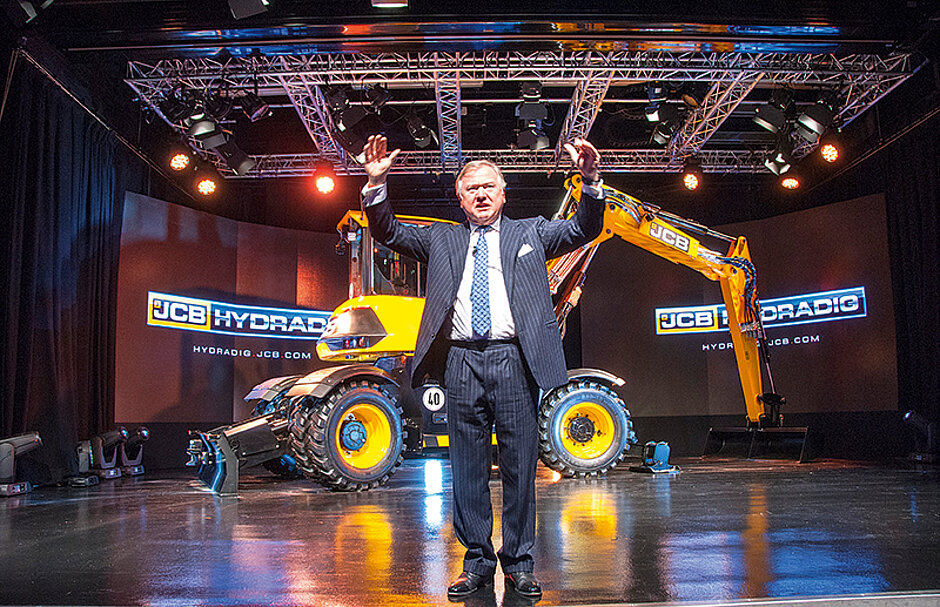 Kernstück des neu konstruierten Hydradig ist die Unterbringung des kompletten Antriebsstrangs und der Hydraulikpumpe im Unterwagen statt im Oberwagen. Dadurch liegt der Schwerpunkt der Maschine tiefer, wodurch die Stabilität und Mobilität gesteigert werden und der Oberwagen einen reduzierten Überstand von nur 120 mm hat – der kürzeste Hecküberstand in dieser Klasse, so JCB. Bei dem unter dem Codenamen »Project 710« über einen Zeitraum von drei Jahren entwickelten Konzept habe man, erläuterten Tim Burnhope und Engineering Director Mick Mohan, zunächst in enger Zusammenarbeit mit einer Reihe von Kunden die Anforderungen analysiert und bewertet. »Unsere Kunden wollten von uns als Lösung eine Maschine, die deutlich bessere Sicht, mehr Stabilität, Wendigkeit, Mobilität und Wartungsfreundlichkeit bietet«, sagte Tim Burnhope.