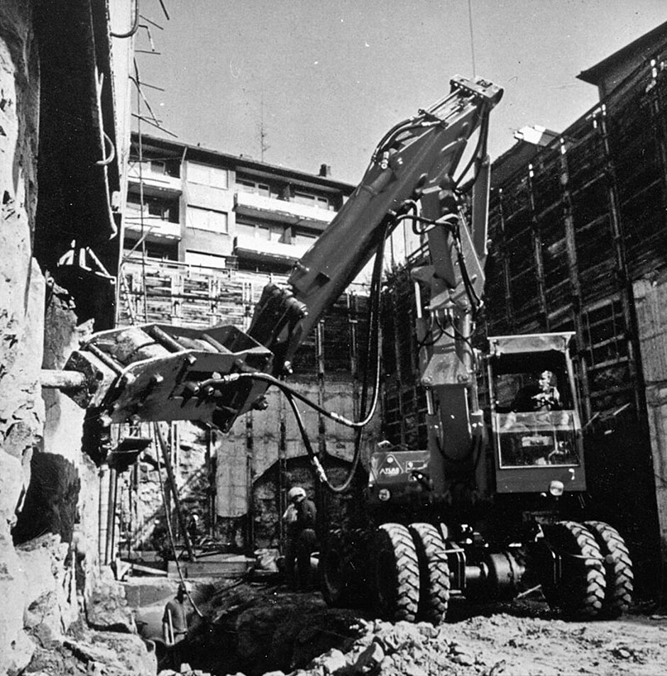Das im Jahre 2002 von Atlas Copco übernommene Unternehmen Krupp Berco Bautechnik hat den maschinengeführten Hydraulikhammer einst entwickelt und 1963 ein Patent darauf angemeldet.