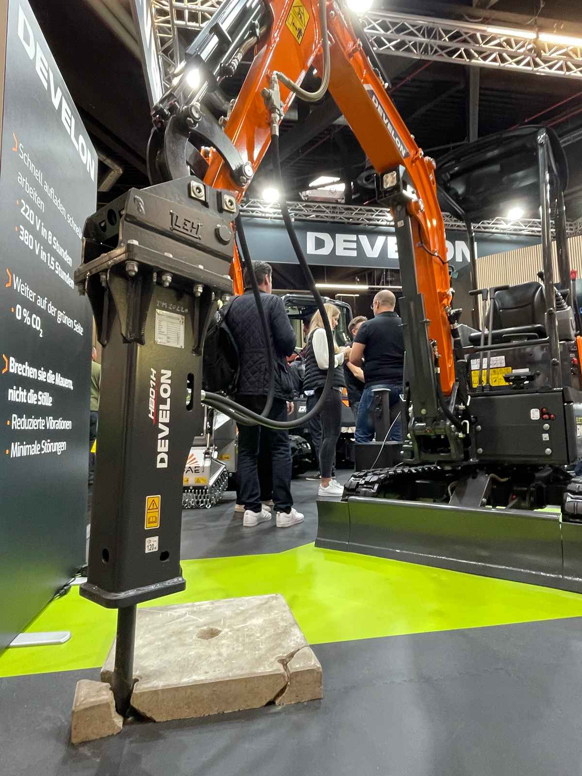 Starkes Interesse fand der Develon Elektro-Kompaktbagger DX20ZE-7, der mit einer im eigenen Hause entwickelten 20,4-kWh-Lithium-Ionen-Batteriepack angetrieben wird. Die gesamte Elektroanlage und alle Komponenten des Minibaggers DX20ZE sind dabei für die Arbeit in rauen Umgebungen optimiert. Mit dem Schnellladesystem können innerhalb von einer Stunde und 20 Minuten 80 Prozent der Batterieleistung wiederhergestellt werden.