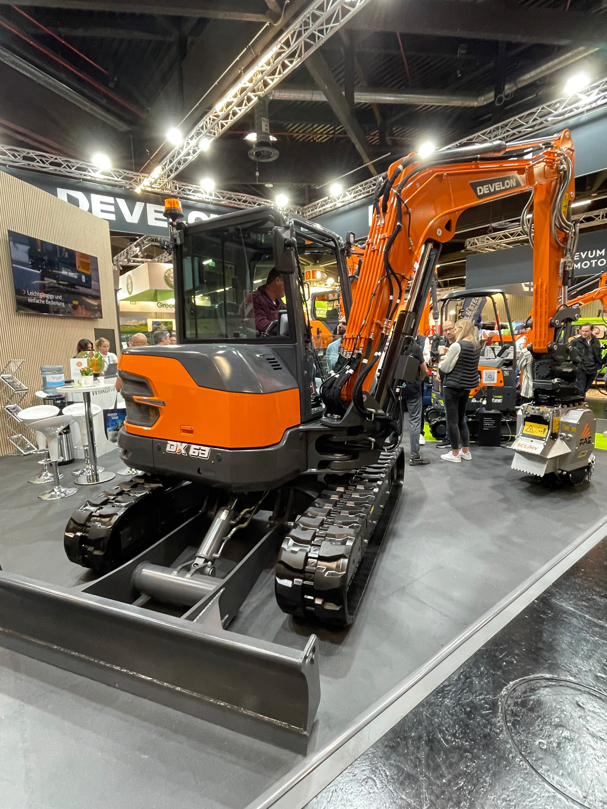Develon anfassen und ausprobieren war das Motto auf dem Außengelände. Deshalb präsentierte das Unternehmen seine Produkte in Aktion auf dem Demonstrationsgelände im Außenbereich der Messe Nürnberg. Mit einer Vielzahl an unterschiedlichen Anbaugeräten wie etwa einem Schaufelseparator und einem Mulcher konnte der DX100W-7 getestet werden und weckte großes Interesse beim Fachpublikum. Gerade die Leistungsfähigkeit im Mulcher-Einsatz hat viele vor Ort wegen der hervorragenden Standfestigkeit und der zugleich weiteren einfachen Bedienbarkeit der Maschine während des Mulcher-Betriebs sofort überzeugt.