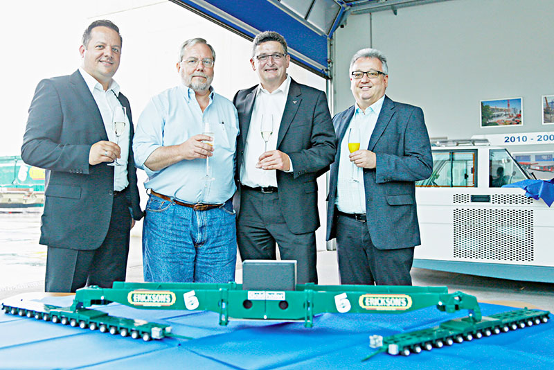 Als Erickson zur Übernahme der neuen Achslinien und der »Faktor 5«-Seitenträgerbrücke im Allgäu weilte, bestellte er bei dieser Gelegenheit kurzerhand per Handschlag zusätzlich zwei neue Neun-Achs-Satteltieflader. »Die Goldhofer Transporter und Anhänger liefern uns einen Vorteil gegenüber unseren Wettbewerbern, weil sie so gut konstruiert und gebaut sind«, lautete die lapidare Erklärung des Schwerlastspezialisten aus Michigan.