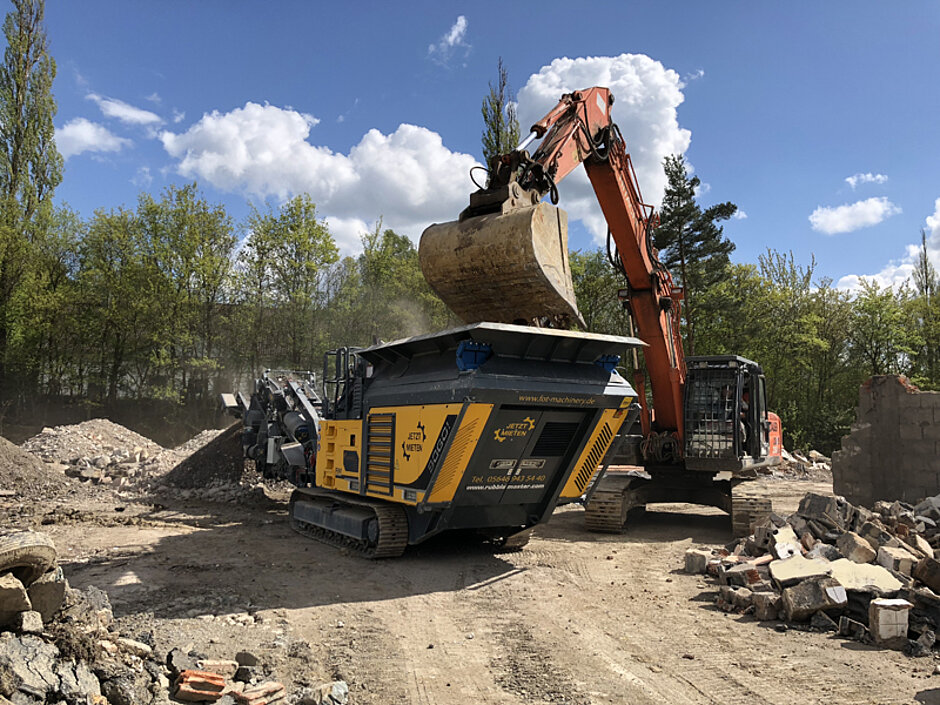 Nachdem der RM 90Go! inkl. der Siebeinheit MS 95Go! gekauft war, ging es auch schon los. Schnell war klar, dass nur durch die zusätzliche Investition in eine mobile Siebanlage, der Mietpark rund war. Also wurde noch eine POWERSCREEN Siebanlage des Modells Warrior 800 angeschafft.