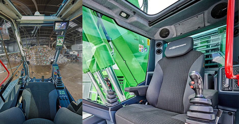 Häufig ist die Kabine nicht nur der Arbeitsplatz der Fahrer, sondern auch ihr ganz persönlicher Bereich. Daher legt SENNEBOGEN viel Wert auf das Wohlbefinden der Fahrer und intergiert zusätzliche Features in die maXcab, wie die Sonnenblende, die für eine verbesserte Sicht und Schutz vor blendendem Sonnenlicht sorgt. Die 12V, 24V und USB-Ladebuchsen ermöglichen ein bequemes Aufladen elektronischer Geräte direkt in der Kabine, eine integrierte Kühlbox hält Getränke und Snacks selbst bei heißen Außentemperaturen gekühlt. Unterhaltung und Sicherheit für den Fahrer bietet das eingebaute Radio, das neben einer integrierten Freisprechanalage auch über Bluetooth- und USB-Funktionen verfügt. Einige Kunden hatten die Möglichkeit, sich im Februar beim SENNEBOGEN Operators' Xperience Fahrertag von den Vorteilen der neuen maXcab zu überzeugen. Das Ergebnis war durchweg Begeisterung über den herausragenden Komfort der Kabine.