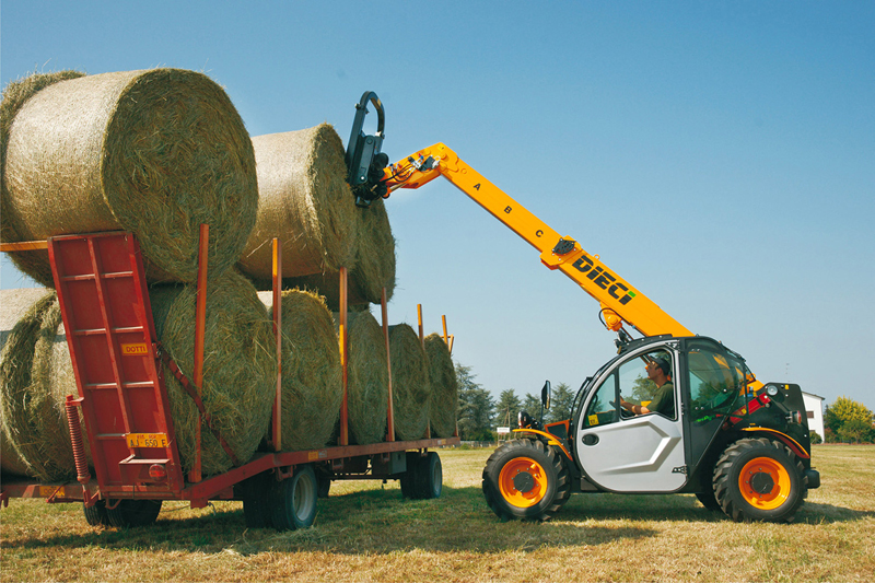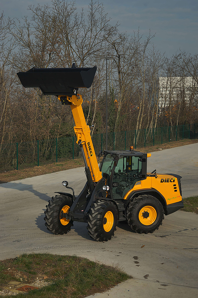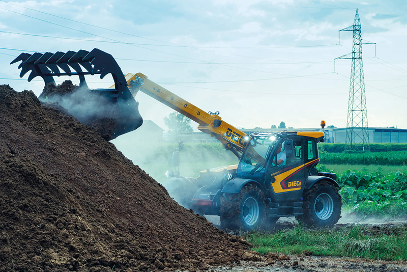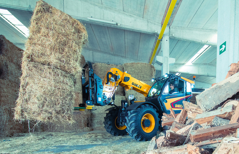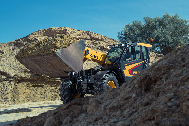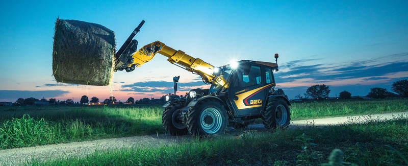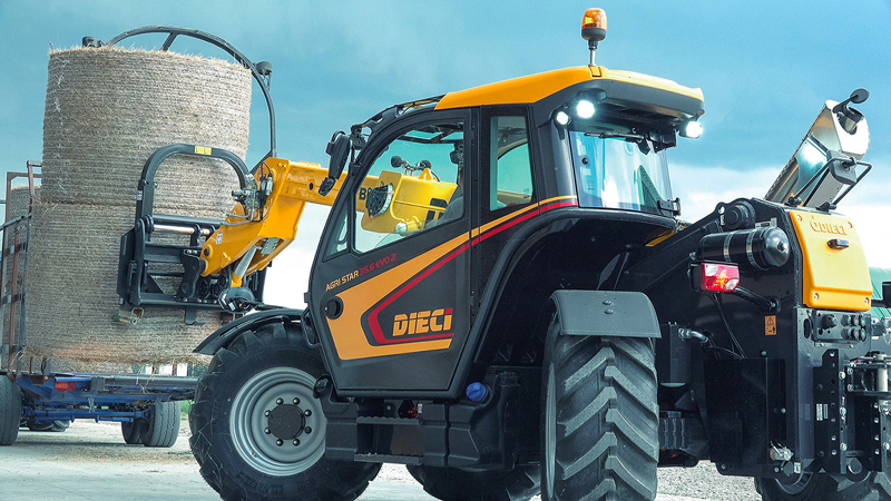 Auf der Agritechnica wird eine der „historischen Säulen“ aus dem Produktbereich Landwirtschaft von DIECI, der MINI AGRI 26.6, zu sehen sein, der wegen seiner Eigenschaften wie Kompaktheit, Wendigkeit, Vielseitigkeit und Leistungsfähigkeit sehr gefragt ist: Denn seine Größe ist ideal für das Arbeiten auf engstem und schwierigem Raum. Der MINI AGRI 26.6 kann neben dem umfangreichen DIECI Zubehörprogramm (Hubhaken, verschiedene Greifer, Erdschaufeln und Schaufeln für Zuschlagstoffe) auch Seilwinden und Personenkörbe montieren. Die Kabine mit ROPS – FOPS-Zulassung ist die geräumigste ihrer Kategorie und garantiert erhöhten Bedienkomfort, auch dank der neuen Tür aus DSCS (Double Skin Composite System), ein innovativer und ultraleichter Kompositwerkstoff, der in der F&E-Abteilung von DIECI realisiert wurde. Dank der Verwendung dieses Materials haben wir das doppelte Ziel erreicht, das Gewicht der Maschine deutlich zu verringern, ihre Leistung zu verbessern sowie ihre Wärme- und Schalldämmung, ihren Komfort und ihre Geräumigkeit erheblich zu erhöhen. Die maximale Tragkraft des MINI AGRI 26.6 liegt bei 2.600 kg und die Hubhöhe erreicht 5,68 Meter. Angetrieben wird er von einem Kubota-Motor Stage IIIB/Tier 4f mit elektronischer Common Rail-Einspritzung 54,6 kW und einem hydrostatischem Ein-Gang-Antrieb mit Verstellpumpe.