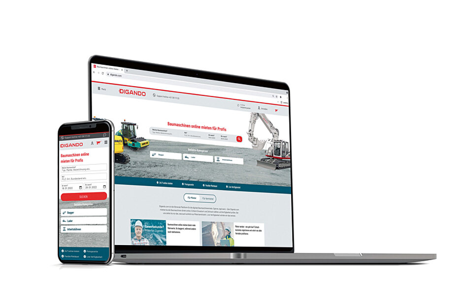 Mittelfristig soll Digando zum One-Stop-Shop für die Baustelle anwachsen. Zunächst umfasst das Angebot in Deutschland die Kategorien Bagger, Anbaugeräte, Lader, Verdichter, Anhänger, Teleskopstapler und Fugenschneider.