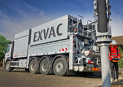 Das lediglich 2,77 m x 1,6 m x 1,88 m große Saugbaggermodell FX20 verfügt über einen 25-PS-Benzinmotor und liefert eine Saugleistung von 15,3 m³/min. Die Aufgabenstellung in der Schweiz für das beauftragte Unternehmen DWL Baumaschinen aus Triengen im Kanton Luzern umfasste mehrere Sondierungslöcher, die zur Prüfung des Grundwasserniveaus auszuheben waren. Das FX20 saugte sich viermal durch den Mutterboden und wechselnde Bodenverhältnisse, wie sandige, kiesige oder lehmige Schichten, bis zu einer Tiefe von 1,4 m und ein weiteres Mal bis zu einer Tiefe von 1,5 m mit einem Durchmesser von jeweils 15 cm bis 20 cm. Der Zeitaufwand je Sondierungschachtung lag bei ebenfalls 15 bis 20 Minuten. Wie die Spezialisten von DWL erwartet hatten, konnte das kleine »Saugfass« die Erwartungen durch sauber ausgesaugte Sondierungslöcher zur allgemeinen Zufriedenheit erfüllen.