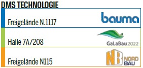 Zur Nürnberger GaLaBau will DMS Technologie mit spannenden Themenwelten aufwarten. Am Stand können Besucher die Anbaugeräte sehen und anfassen sowie auf der Vorführfläche in Aktion erleben.