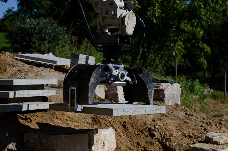 Ob beim Setzen von Natursteinen, dem Entfernen von Baumwurzeln, Verladen von Grünschnitt und Bewegen von Schüttgütern – überall kommt der DMS Sortiergreifer SG schon heute als Alleskönner zum Einsatz. Die standardmäßig montierten Zähne sind unter anderem zum Greifen von Steinen optimal und der besonders große Greifraum des Anbaugeräts kann vollständig ausgenutzt werden. Einen wertvollen Zusatznutzen stiften die bereits optional erhältlichen Sets Soft- und Pipegrip. Damit können Rohrleitungen und Schachtringe spielend einfach bewegt werden, ohne das Material zu beschädigen oder einen Mitarbeiter im Gefahrenbereich zu benötigen. Durch Soft- und Pipegrip wird das Einsatzspektrum nochmals enorm erweitert, wodurch die Auslastung des Baggers mit einem einzigen Anbaugerät weiter erhöht wird. Gleichzeitig ist der Arbeits- und Zeitaufwand minimiert.