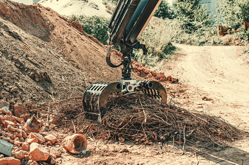 Basierend auf den guten Testergebnissen entschied sich die Firma Grübel, auch einen Mehrzweckgreifer in den Test zu nehmen. »Dieser hilft uns hauptsächlich beim Laden von Grauwacke-Bruchsteinen und erfüllt in jeder Hinsicht alle unsere Erwartungen. Für diese Art von Arbeiten ist eine solide Schließkraft des Greifers unerlässlich. Auch Ausschachtungsarbeiten machen wir mit dem gleichen Anbaugerät. Ebenso können Rundhölzer gegriffen werden. Ein richtiger Mehrzweckgreifer eben«, ist Holger Grübel beeindruckt von der Vielfalt der Einsatzmöglichkeiten.
