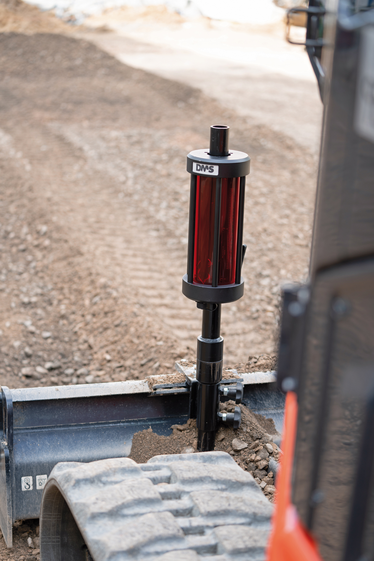 Das schnell montierbare System ermöglicht in Verbindung mit einem handelsüblichen Rotationslaser die automatische Steuerung des Baggerschildes auf die Zielhöhe. Durch das Abfahren der Fläche erstellt der Fahrer mithilfe des Systems schließlich das gewünschte Planum. Dabei können mit geringem Aufwand gute Endergebnisse mit Abweichungen von +/-5 mm erzielt werden. Wirtschaftlich interessant ist die hohe Flächenleistung pro Stunde auf mittleren bis großen Flächen. Entscheidend hierfür ist das aktive Eingreifen der Steuerung in die Hydraulik des Baggers. Dies stellt den großen Unterschied zu herkömmlichen 2D und 3D Steuerungen dar. Zunächst ausgelegt für Standardbagger von 4 t bis 9 t punktet die neue DMS Baggerschildsteuerung laut Hersteller überall dort, wo ebene Flächen hergestellt werden sollen. Ein Clou: Durch Abfahren der Ebene nach einem gewissen Schema ist auch die Einbringung von Gefällen umsetzbar. d