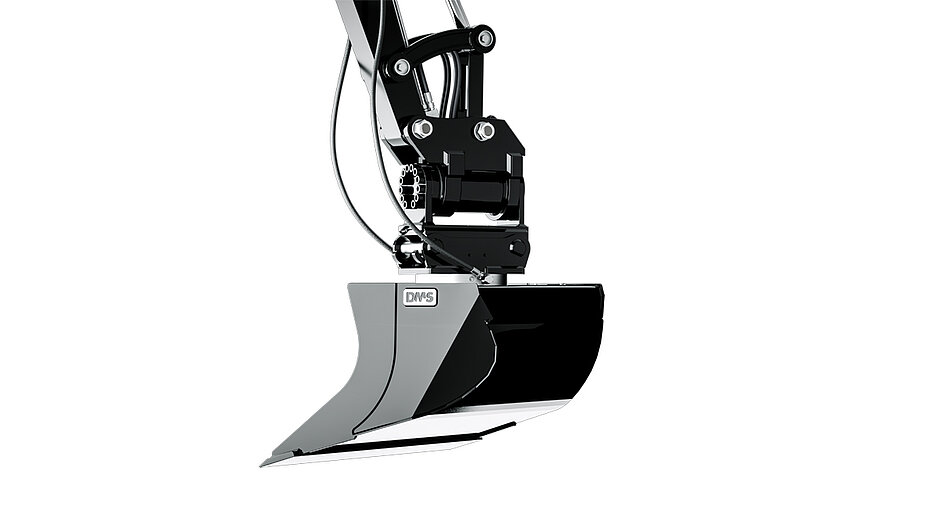 Das Zusammenspiel beider Komponenten verleiht dem Bagger eine nahezu »handgelenksartige« Beweglichkeit. Der Tilt übernimmt das Schwenken, der Rotatorlöffel ermöglicht die vollständige Drehbarkeit. So lassen sich auch komplizierte Geländeverläufe problemlos darstellen. Selbst bei Hindernissen im Baufeld muss die Maschine nicht ständig neu positioniert werden – vielmehr lässt sich darum herum arbeiten. Das spart laut DMS Zeit, reduziert den Kraftstoffverbrauch und steigert die Effizienz. Die Besonderheit des DMS-Rotatorlöffels ist laut eigener Aussage der in den Löffelkörper integrierte Drehantrieb. Dadurch bleibe der Löffel besonders kompakt und die empfindlichen Teile des Antriebs seien durch die Kapselung bestens geschützt. Die schmale Stielspitze erlaubt im Übrigen das Arbeiten in tiefen Gräben ohne den Nachteil eines hohen Leergewichts. Durch die einfache Demontierbarkeit über den klassischen Schnellwechsler lässt sich das Anbaugerät mit unterschiedlichen Maschinen einsetzen. Die Form eines Planierlöffels liefert die notwendige Vielfalt möglicher Einsätze, ohne dabei die Performance der Maschine zu beeinträchtigen. In Kombination mit einem Tilt lässt sich der Löffel ähnlich wie an einem Tiltrotator bewegen. Ein abschließender Tipp: Sowohl der DMS-Rotatorlöffel als auch der »DMS Tilt« lassen sich auf der RATL in Karlsruhe im Live-Einsatz begutachten.d