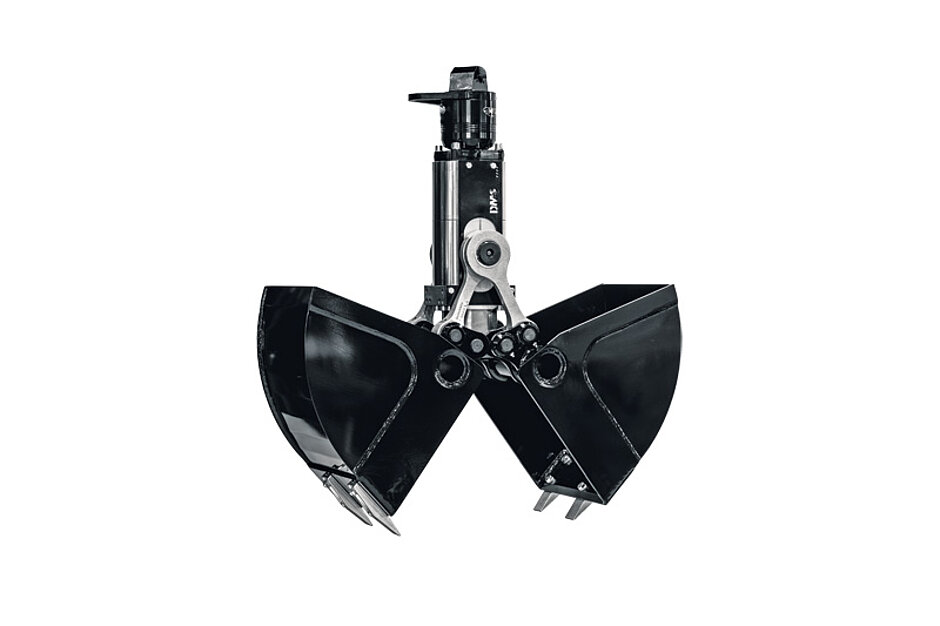 Bei der zweiten DMS-Produktneuheit handelt es sich um den DMS-Grabgreifer mit stehendem Zylinder. Er basiert auf dem bekannten Prinzip des doppelt wirkenden Plungerzylinders aus der DMS-Sortier- sowie -Abbruchgreiferserie und hat sich bereits tausendfach bewährt. Der Grabgreifer soll, so der Hersteller, die Vorteile der Robustheit durch eine vollständig gekapselte Kolbenstange sowie die innenliegende Ölführung mit höchster Präzision und bisher nicht gekannter Eleganz paaren. Alle Maschinenführer eines Baggers mit 6 t bis 10 t Dienstgewicht sollen damit auf ein Anbauwerkzeug zurückgreifen können, das ihnen in beengten Räumen präzise Grabergebnisse garantiert sowie leicht zu bedienen ist – und sich dabei besonders wartungsarm zeigt. In Kombination mit den DMS-Softgrip soll auch der Greifer zu einem Alleskönner werden, wenn es um das Setzen von Steinen aller Art geht, ohne dabei die Oberfläche anzugreifen.
