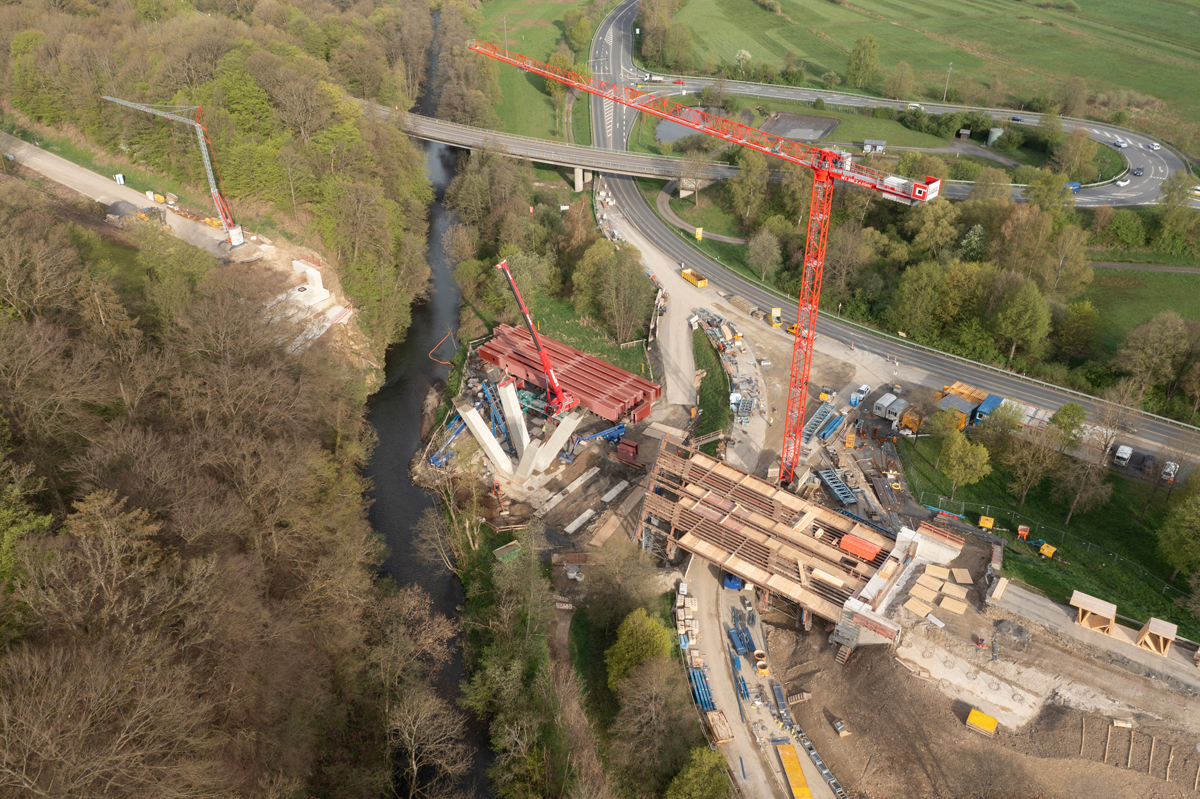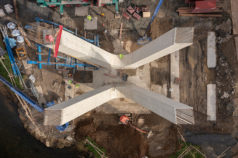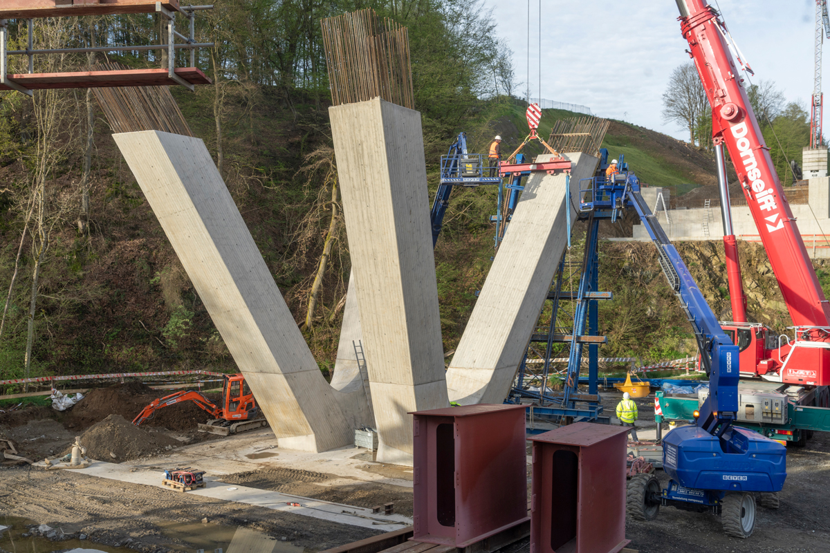 Mittlerweile ist die Betonage sowohl der Pfeiler als auch des Überbaus abgeschlossen. Im Frühling 2025 soll die Brücke dann für den Verkehr freigegeben werden.