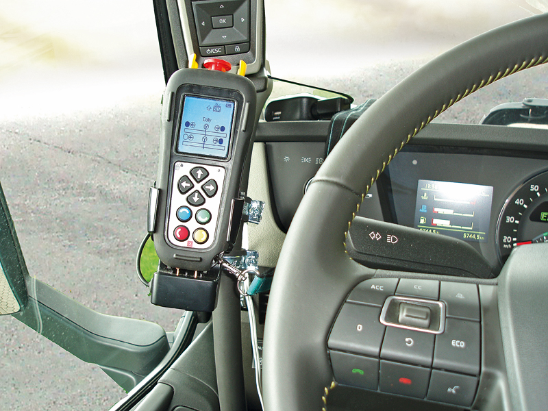Auf der Sensorik der DOLL tronic baut das Trailer-Management-System DOLL connect auf, das Fahrzeugdaten wie Achslast, Reifendruck, Position von Fahrniveau oder Lenkung erfasst, außerdem Fehlermeldungen der Zentralschmieranlage überträgt und die Position von Rampen, Querverschiebung und Hauptrahmenverriegelung überwacht. Alle Infos werden im Display der Funkfernbedienung angezeigt.