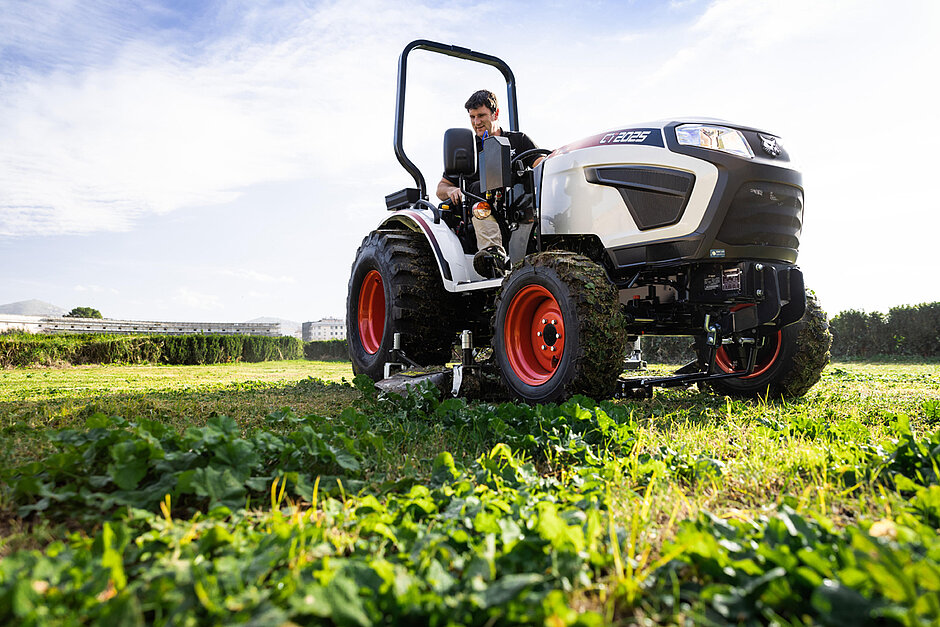 Eine weitere Option für Bobcat-Kompaktlader ist das Schlegelmäher-Anbaugerät, das dank der schwimmenden Aufhängung und der kompakten Mähdecklänge dem Bodenprofil gut folgen kann. Die Heckklappe ist verstellbar, sodass der Fahrer die Größe des ausgeworfenen Materials von fein bis grob einstellen kann. Die auf voller Breite konisch zulaufende hintere Walze erhöht das Wendevermögen.