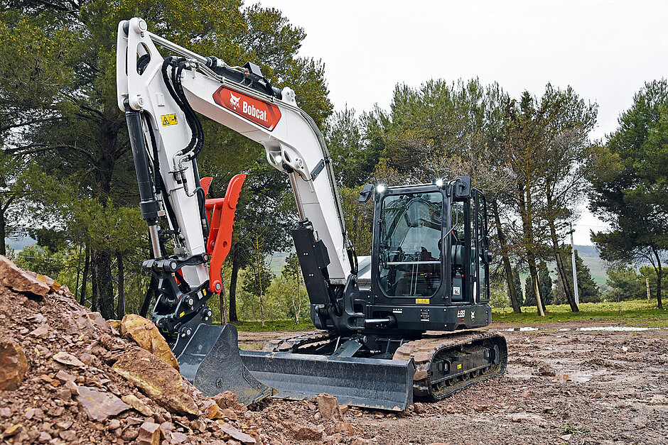 Ein Stage-V-konformer Motor, eine verbesserte Verarbeitung sowie eine robuste Bauweise sollen den neuen Kompaktbagger für unterschiedlichste Arbeitseinsätze am Bau wappnen. Mit der R2-Serie finden sich Funktionen und Optionen wie Aux-4-Kippkupplungs- und Aux-5-Hydraulikkupplungsleitungen sowie ein verlängerter Unterwagen. Gleich geblieben ist für Bobcat-Verhältnisse hingegen eine gute Übersicht: Die Fahrerkabine ermöglicht dem Anwender eine gute Übersicht, präzise Steuerung am Joystick und intuitive Bedienelemente. Im Gespräch mit den Produkt-Managern vor Ort wurde deutlich, dass viel Wert auf eine anwendernahe Entwicklung gelegt wurde. »Ähnlich wie bei den 5-t- bis 6-t-Maschinen der R2-Serie wird auch beim neuen E88 die Philosophie ›rund um den Fahrer gebaut‹ konsequent fortgesetzt«, erklärte Jiri Broz, Product Manager MEX EMEA bei Bobcat.