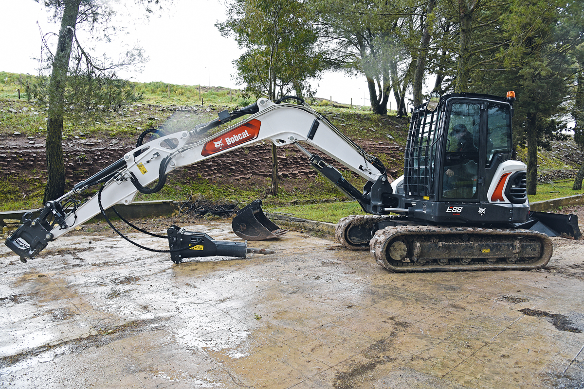 Zum Einsatz kam beispielsweise das bewährte Konzept der E60-Kabine: Sie ist geräumig aufgebaut und bietet dem Fahrer viel Bewegungsfreiheit. Gleichwohl, so die Bobcat-Experten weiter, habe man Wert auf einen einfachen Ein- und Ausstieg gelegt: »Die Türen sind breiter, die Trittstufen rutschfest und der Fahrersitz individuell anpassbar«, erläuterte Jiri Broz. Zudem ließ sich der Lärmpegel gegenüber dem E85 um rund 2 dB(A) reduzieren, um die Beeinträchtigung während der Arbeit zu verringern. Wer im neuen E88 Platz nimmt, merkt, dass vom Fahrhebel über die Pedale bis hin zu den Displays alles möglichst ergonomisch angeordnet ist. Für eine derart kompakte Maschine spricht darüber hinaus aber auch die Transportfähigkeit: Bobcat hat mit dem E88 einen Allrounder auf den Weg gebracht, der auffallend viele Einsatzgebiete abdeckt. »In den vergangenen Jahren ist viel Bewegung in den Einsatz von Kompaktbaggern gekommen: Die Maschinen werden nicht mehr nur für Standardarbeiten wie Baggerarbeiten, Landschaftsbau oder Abbrucharbeiten eingesetzt, sondern vielmehr als vielseitige Geräteträger«, so Jiri Broz. »Aus diesem Grund kann die neue R2-Serie E88 mit bis zu fünf Nebenaggregaten und der A-SAC-Technologie (Advanced Selectable Auxiliary Control) ausgestattet werden. Sie soll eine breite Palette von Maschinenanpassungen ermöglichen, um allen Anbaugeräteanforderungen gerecht zu werden.« Als weiteren Vorteil nennt der Experte großzügig dimensionierte sowie leicht zugängliche Abdeckungen, um alle Service- und Wartungsstellen zu erreichen.