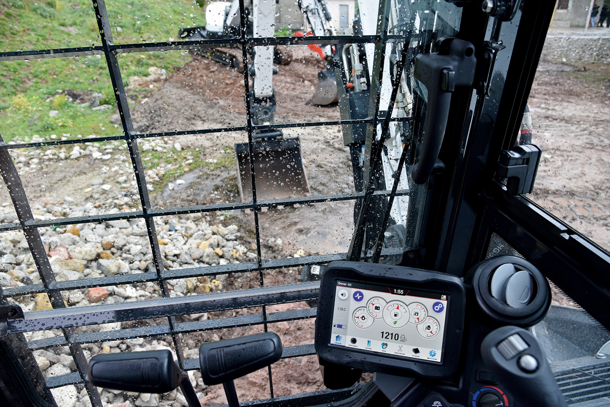 »Als Schnittstelle zwischen Maschine und Fahrer ist ein robustes, leicht ablesbares 5"-Display verbaut – optional stünde aber auch ein 7"-Touchscreen zur Verfügung«, fuhr Jiri Broz fort. Übrigens: Die Tiefenprüfung und die Rückfahrkamera können mit beiden verfügbaren Displays verbunden werden. Ziel der Bobcat-Ingenieure war es, die Maschine samt Kabine den gestiegenen Anforderungen des Marktes anzupassen, gleichzeitig aber auch einen gezielten Blick auf die Forderungen und Wünsche der direkten Anwender zu richten, die tagtäglich mit den Bobcat-Maschinen im Einsatz sind. d