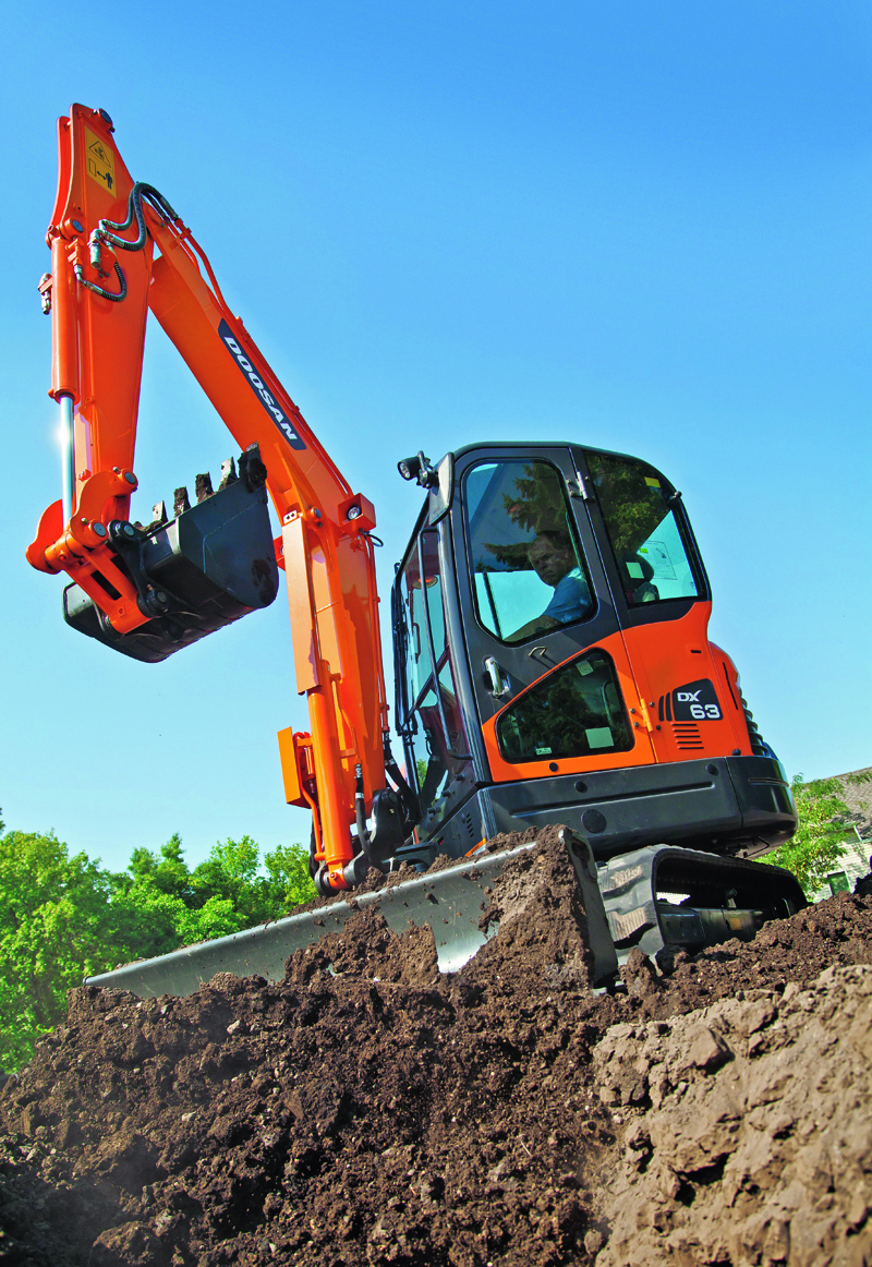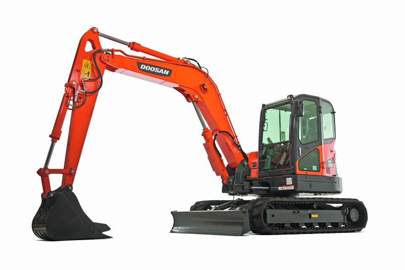 Der 8-Tonner DX85R-3 will mit der besten Kraftstoffeffizienz seiner Klasse aufwarten. Die Löffelgrabkraft beträgt 6,3 t. Dies wird mit einer Zugkraft von 6,6 t kombiniert, während die Fahrgeschwindigkeit in der niedrigen Fahrstufe 2,7 km/h und in der hohen Fahrstufe 4,7 km/h beträgt.