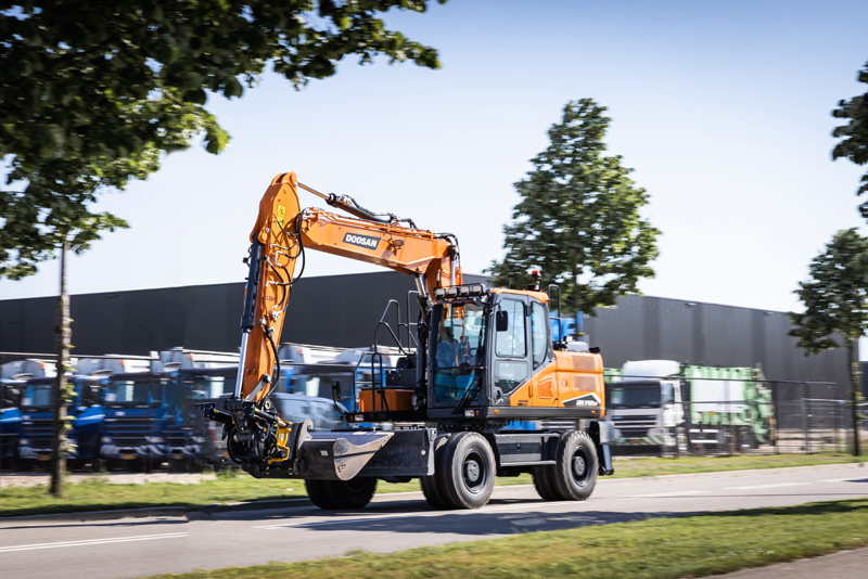 Zur Einhaltung der Abgasnorm der Stufe V werden die neuen Mobilbagger vom Doosan-Diesel DL06 der neuesten Generation angetrieben, der 102 kW (176 PS) bei 2 000 min¯¹ leistet. Der DL06-Motor übertrifft die Stufe-V-Emissionsvorschriften ohne Abgasrückführung (EGR), indem die beim Verbrennungsvorgang verfügbare Luftmenge erhöht wird, wodurch die Prozesstemperatur steigt und die Menge der erzeugten Partikel deutlich reduziert werden soll. Dies ist kombiniert mit einer DOC/DPF+SCR-Nachbehandlungstechnologie.