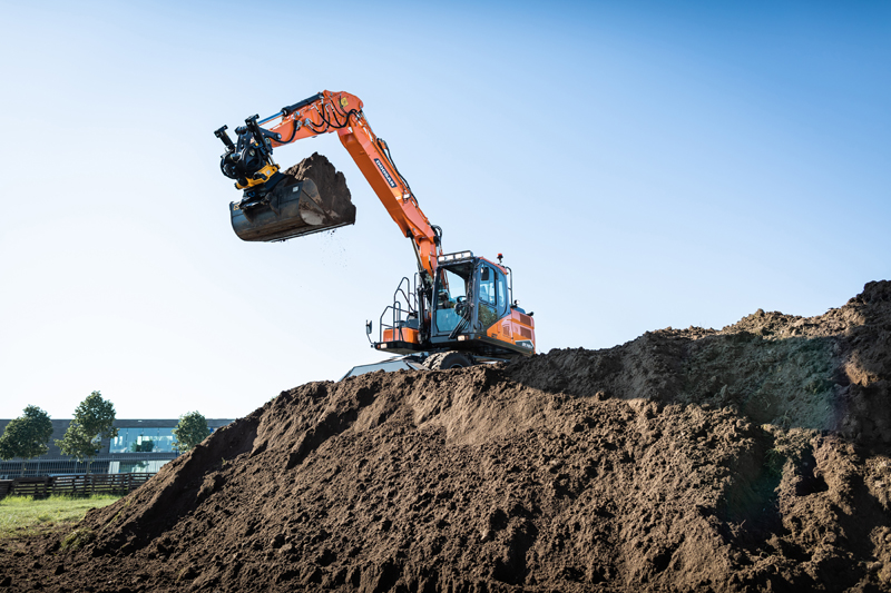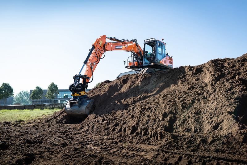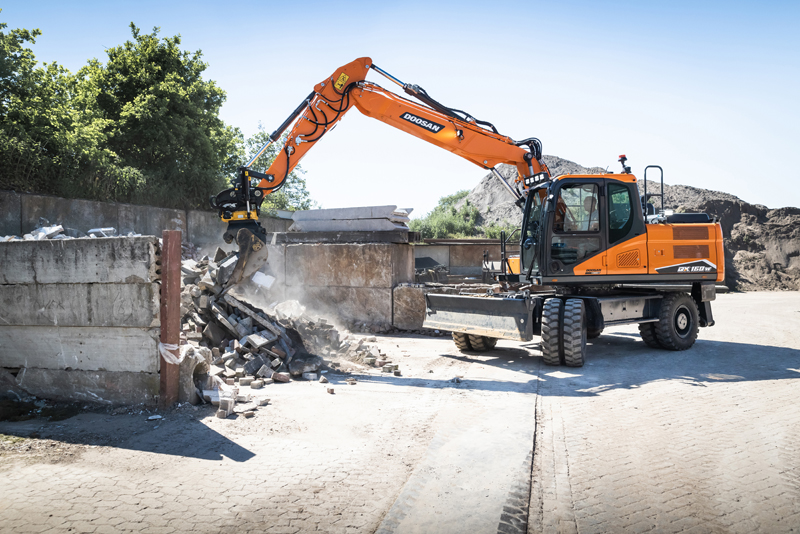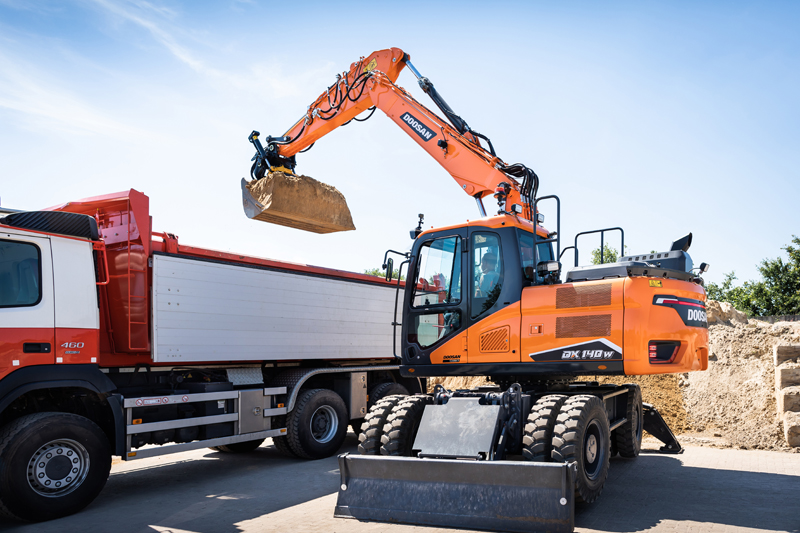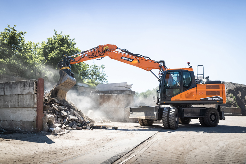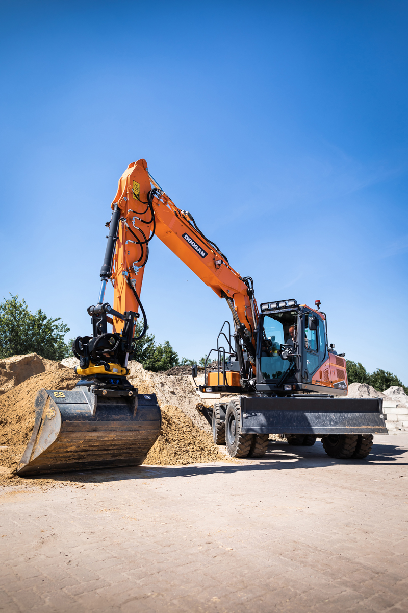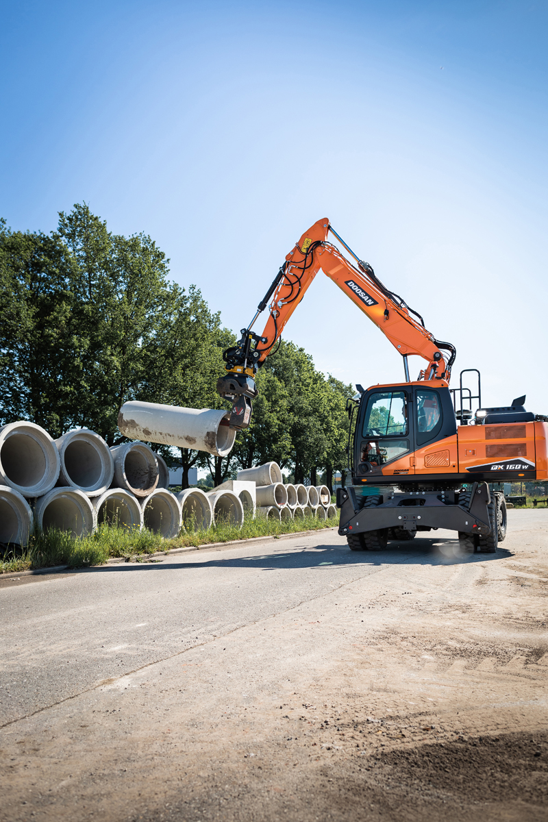 Die Modelle DX140W-7 und DX160W-7 bieten nun eine laut Hersteller um 30 % verbesserte Leistung für Rotationswerkzeuge wie Mulcher sowie einen optimierten Arbeitsbereich für den Verstellausleger. Oben am Auslegerzylinder befindet sich jetzt ein zweites Druckhalteventil.