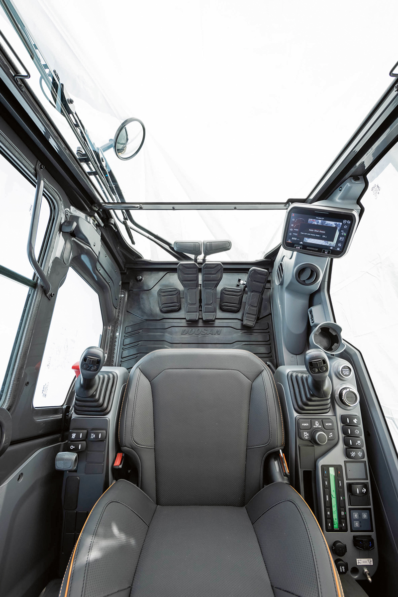 Die Kabine der neuen Modelle will neben hervorragender Geräumigkeit und Ergonomie mit einem bislang kaum erreichten Niveau hinsichtlich Komfort und Bedienerfreundlichkeit punkten. Alle neuen 20-t-Modelle verfügen zudem serienmäßig über das DoosanConnect-System zur drahtlosen Maschinenparkverwaltung. Das System ist bei allen neuen Doosan-Baggern ab 14 t, -Radladern und knickgelenkten -Muldenkippern Bestandteil der Serienausrüstung. t