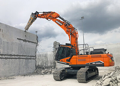 Die beiden Modelle DX27Z-7 und DX35Z-7 besitzen einen Hydraulikfluss von 58 l/min bzw. 74 l/min. DX50Z-7 und DX55R-7 können mit einem Hydraulikfluss von 80 l/min aufwarten. Es gibt ein neues EPPR-Ventil für 2-Wege- sowie optionale Rotationsfunktionen, das dem Fahrer über ein Joystick-Rad die Proportionalsteuerung und eine 10-stufige Einstellung der Hydraulikflussrate im Display bereitstellt.