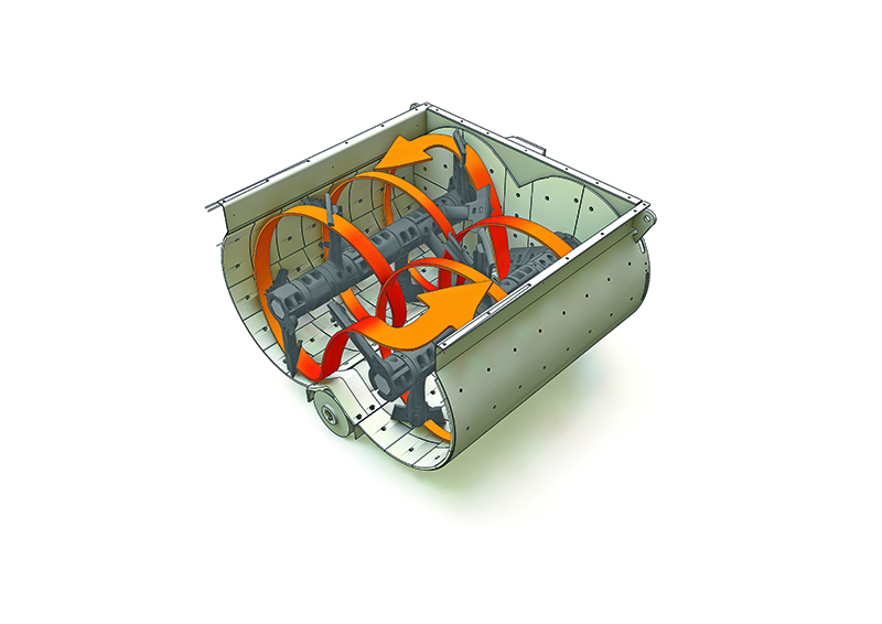 Wenn Betonrezepturen wie hier eine hohe Zähigkeit aufweisen, müssen Antriebstechnik und Mischwerk besonders leistungsstark sein. Seit 30 Jahren sei, so informiert BHS-Sonthofen, die Annahme verbreitet, Doppelwellen-Chargenmischer wären für die Herstellung von Staudammbeton im Vergleich zu anderen Mischern weniger geeignet. Auch in diesem Projekt war der Endkunde zunächst nicht vom Einsatz eines Doppelwellen-Chargenmischers überzeugt. Aufgrund seiner langjährigen Erfahrung bestand für Alquezar-Geschäftsführer José Antonio Chaure kein Zweifel daran, dass nur der Doppelwellen-Chargenmischer die erforderliche Qualität des Betons garantieren konnte: »Bei der großen Körnung des Zuschlagstoffs in diesem Projekt wussten wir, dass kein anderer Mischer zur Herstellung des Staudammbetons in Frage kommt. Bei der Entscheidung für den Doppelwellen-Chargenmischer konnten wir auf unsere ausschließlich positiven Erfahrungen mit BHS aufbauen und dem Kunden seine Bedenken nehmen.«