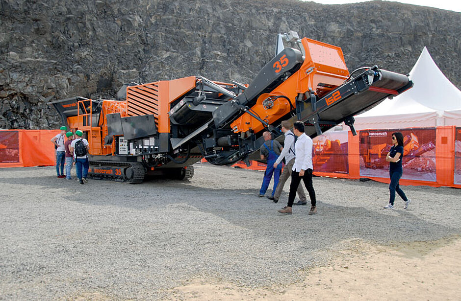Viele fachkundige Besucher hätten ihren Weg zum dsb-Stand gefunden. »Die Besucherzahlen sprechen für sich. Wir haben so viele Anfragen wie noch nie und können mit Stolz sagen, dass sich unser Einsatz in den letzten Jahren wirklich ausgezahlt hat«, berichtet Robert Schmidt, Produktmanager bei dsb Maschinenbau. Das Unternehmen habe seine Anlagen markant weiterentwickelt. Der nach eigenen Angaben Leistungsführer in der Klasse von 30 t bis 50 t präsentierte in diesem Jahr eine Innocrush 35 mit aufgebauter Siebbox IS2. Die Innocrush 35 erreicht einen Durchsatz von bis zu 350 t/h. Auch mit aufgebautem Rückführband hat die Anlage eine Maschinenbreite von unter 3 m und kann so leicht transportiert werden und gilt als sofort einsatzbereit. Mit besonderer Brechergeometrie, der stufenlosen Drehzahleinstellung des Rotors und den beiden getrennt hydraulisch einstellbaren Prallschwingen sieht dsb die Brecherkammer optimal ausgerüstet. »Ob es um die vielen technischen Raffinessen oder auch das neue Design unserer Maschine geht – die Kunden zeigten sich auf der Messe wirklich begeistert«, so Schmidt. §