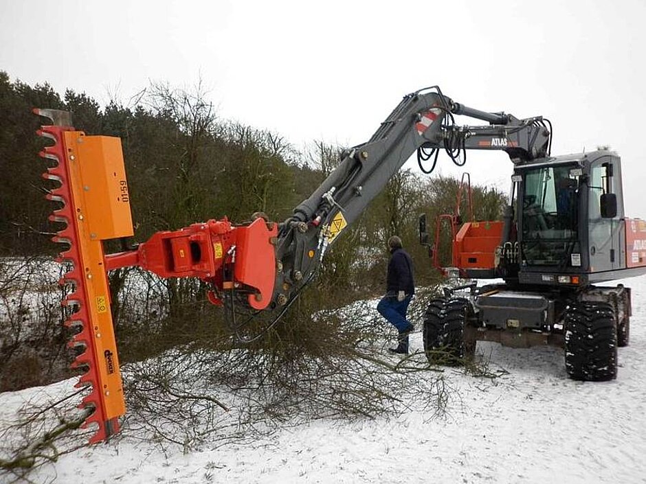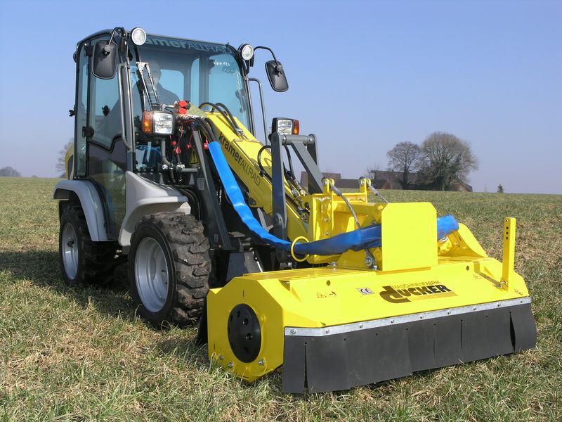 „Nimm den Bagger und mäh‘ den Rasen.“ So abwegig ist dieser „Auftrag“ gar nicht. Denn, Dücker Anbaugeräte und Arbeitsköpfe können an einer Vielzahl von Geräteträgern aus dem Baumaschinenbereich montiert werden. Das Spektrum reicht vom Schmalspurtraktor über Pflegegeräte und Radlader bis hin zum Bagger.