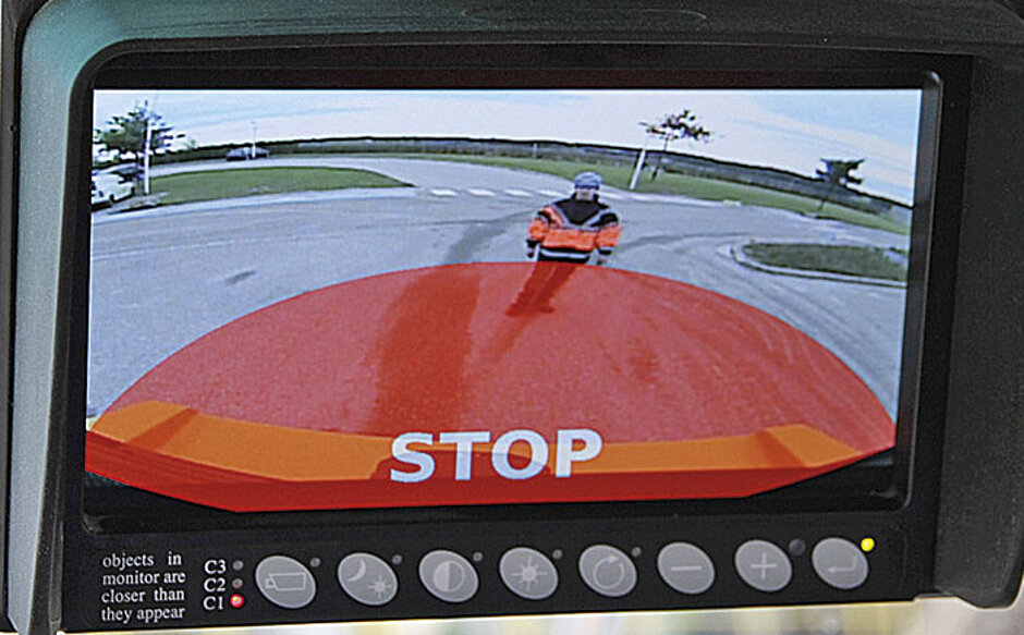 Jede Neuerung muss zum spezifischen Kunden passen, denn »nach ein paar Wochen Arbeit mit dem Radar Eye-Sichtsystem sagten die Bediener, dass die Warnsignale des Systems nicht optimal seien. Bei all dem Klingeln, Pfeifen und den beweglichen Teilen, mit denen man es in der Kabine eines Radladers zu tun hat, gingen die Warntöne von Radar Eye unter«, so Ophelders. Orlaco bot eine maßgeschneiderte Lösung in Form eines großen, stummen »Stop«-Zeichens, das jetzt als Warnhinweis auf dem Bildschirm aufleuchtet. So erhält ein Bediener im Falle des Falles eine Aufforderung zum Anhalten oder zur Umsetzung einer Anpassung.