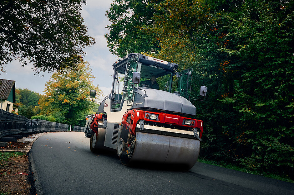 Punkten kann die Maschine allerdings noch mit vielen weiteren Aspekten: Ein besonderes Merkmal der CX-Walze ist ihr »Seismic Asphalt Verdichtungssystem«. Diese innovative Technologie ermittelt kontinuierlich die optimale Verdichtungsfrequenz automatisch. Im Eco Mode lässt sich dadurch nach Angaben des Herstellers in Abhängigkeit vom Einsatzgebiet jährlich eine Kraftstoffeinsparung von bis zu 25 % erzielen. Dies führt nicht nur zu finanziellen Vorteilen, sondern trägt auch zu einer entsprechenden Emissionsreduzierung bei.