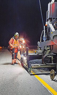 Veidekke, eines der größten Bauunternehmen in Skandinavien, arbeitete bereits mit dem SD2500CS Protac auf einer Nachtbaustelle nahe der norwegischen Hauptstadt Oslo. Im Einsatz zeigte sich die Mannschaft sehr zufrieden mit dem Fertiger und hatte dank der intuitiven Benutzeroberfläche auch keine Probleme, den SD2500CS Protac beim nächtlichen Ersteinsatz zu bedienen, wie Veidekke-Bauleiter Atle Sjøen berichtet. »Das Sprühbild war lückenlos, selbst bei geringen Mengen von 200 g/m², und die Oberfläche war sehr gleichmäßig. Der Einbau mit dem Sprühfertiger unterschied sich nicht so sehr von der Arbeit mit einem Fertiger ohne Sprühfunktion. Dank der guten Sicht für den Fahrer fühlten wir uns auf der Baustelle absolut sicher.«