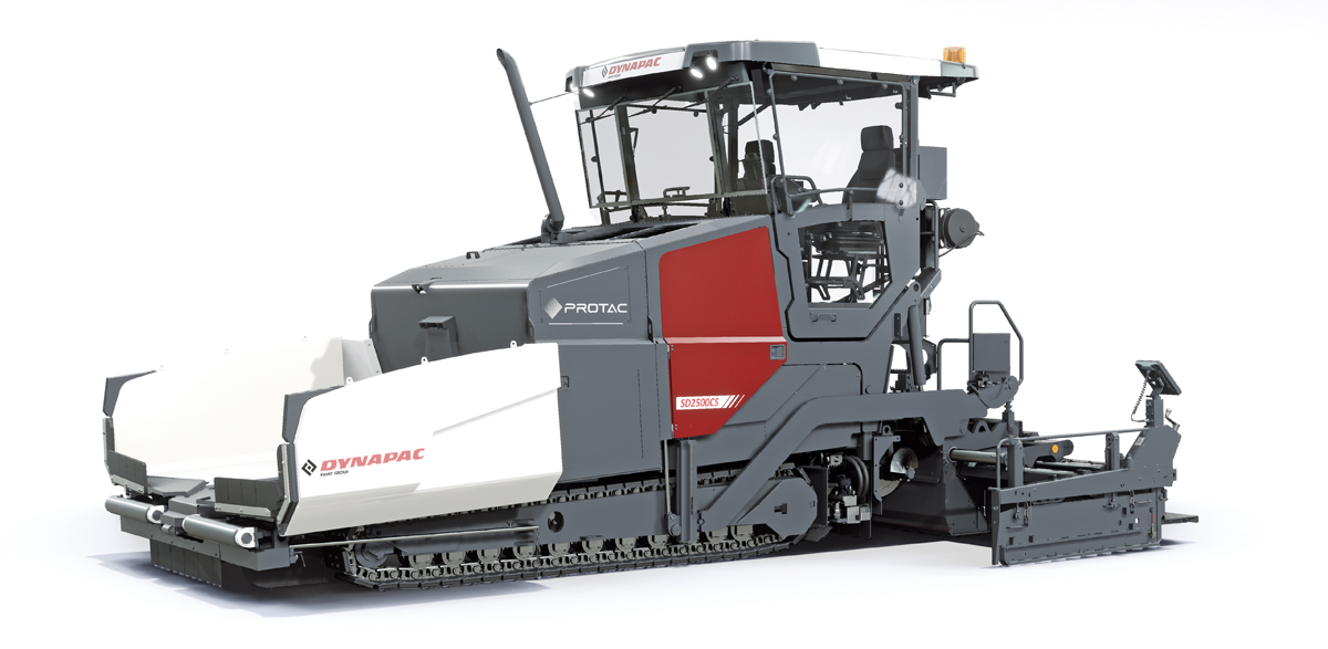 Pluspunkte des Dynapac-Sprühfertigers SD2500CS Protac Sprühbild: Laut Hersteller besonders gleichmäßiges Sprühbild (auch bei kleinen Mengen) und von 0,2 kg/m2 bis 1,6 kg/m2 einstellbar, symmetrisches Design für eine ebenmäßige Emulsionsverteilung, Sprühbalken folgt der Bohle, Bohlenbediener kann Sprühbalken übersteuern, um diesen weiter oder weniger als die Bohlenbreite auszufahren, großer Emulsionstank mit intelligenter Heizung, schnelles Aufheizen für einen schnellen Arbeitsbeginn, schonende Erwärmung mit Heizmatten für eine stabile Emulsion, 2 100 l realer Füllgrad Bediener im Mittelpunkt: Sprüheinstellung direkt neben den Bedienpult, laut Hersteller hervorragende Übersicht für hohe Sicherheit und gesteigerten Komfort, Befüllung von beiden Seiten mit Füllstandsanzeige Transport und Verladung leicht gemacht: 2,55 m Transportbreite, ausbalanciertes Maschinen-Design, Beladung mit und ohne Emulsion möglich.