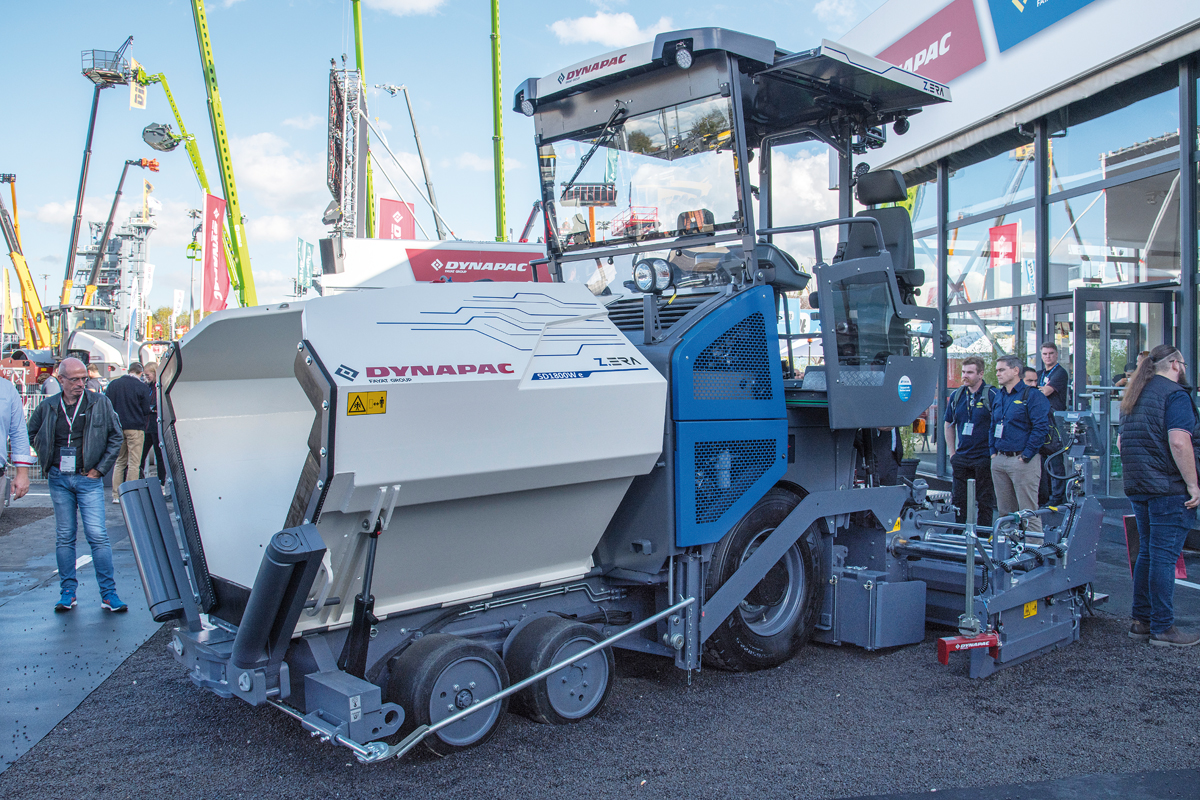 Um die Elektrifizierung von Straßenfertigern voranzutreiben, hat Dynapac den SD1800We entwickelt und neben vielen weiteren Produkten auf der Bauma vorgestellt. Er gilt als ein Vorgeschmack auf eine neue Ära umweltfreundlicher Maschinen und sauberer Baustellenumgebungen. Der eCity-Fertiger ist Teil des Z.ERA-Programms von Dynapac, das den Wandel zu einer emissionsneutralen Welt vorantreibt, indem es auf fossilfreie Antriebe wie alternative Kraftstoffe, batteriebetriebene Motoren und Wasserstofflösungen setzt.