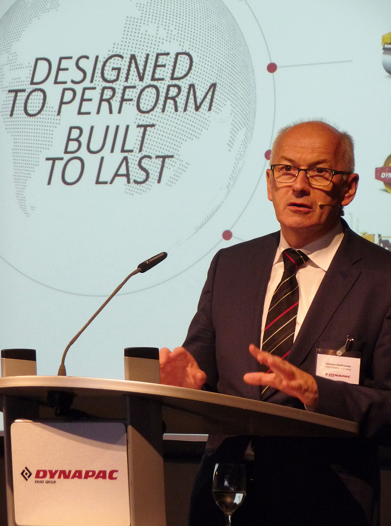 Eine Verschmelzung sei trotz einer fast identischen Produktpalette nicht geplant, und auch auf Messen werde man »keine Kompromisse« eingehen, so Jörg Unger weiter. Jede der beiden Marken solle sich mit einem eigenen Stand präsentieren. Die Wettbewerber Dynapac und Bomag unter einem Dach zu vereinen, stelle aber auch eine Herausforderung dar. So geht Jörg Unger davon aus, dass es »an der einen oder anderen Stelle« durchaus mal schwierig werden könne. Er sagte aber auch, dass in genau diesen Situationen die Verkäufer gefragt seien: »Wenn es keinen Wettbewerb gibt, dann braucht man auch keine ›sales people‹«, so Jörg Unger. Jean-Claude Fayat, Präsident der Fayat-Gruppe, erinnert in diesem Zusammenhang daran, dass er die Fayat-Gruppe trotz der rund 19 000 Mitarbeiter in mehr als 120 Ländern und eines Gesamtumsatzes von 3,5 Mrd. Euro als Familienunternehmen sieht, das die Werte und die Kultur ihrer Unternehmen respektiert und dabei »besonders flexibel, kreativ und innovativ« sein will.