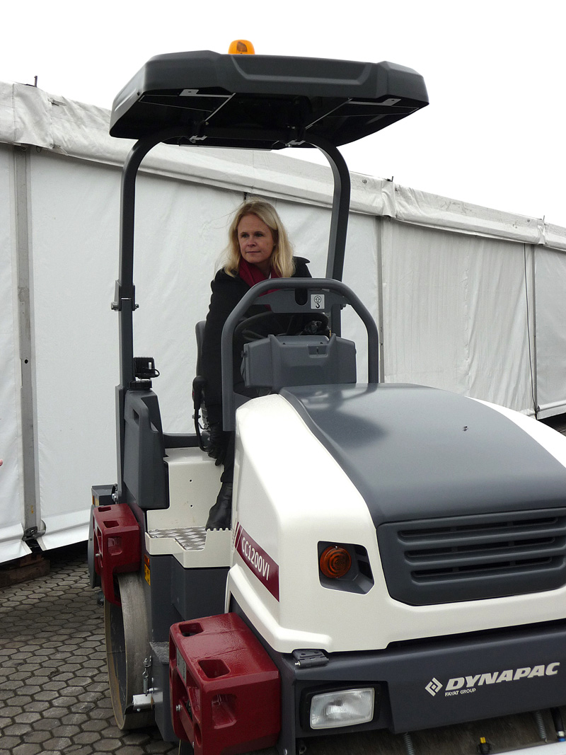 Einer der Höhepunkte der Veranstaltung war die Präsentation der Walzenbaureihe CC1100-1200. Entwickelt worden sei »eine robuste und moderne Maschine«, die für bestmögliche Verdichtungsergebnisse sorgen soll. Eine Besonderheit: Den Wassertank der Walzen hat man in den hinteren Teil verlegt. Der quer verbaute Motor sowie eine neu konzipierte Motorhaube sollen eine bessere Sicht auf die Bandagen ermöglichen. Während der optionale, um 210 mm verstellbare Schiebesitz dem Nutzer mehr Bewegungsfreiheit schenken soll, trägt die ebenfalls optional erhältliche Arbeitsbeleuchtung zu besseren Sichtverhältnissen bei Nachtarbeiten bei. Außerdem lässt sich der Versatz bei den neuen Modellen mechanisch einstellen. Wenn der hintere Rahmen über Langlöcher nach links ausgerichtet wird, bietet sich ein Versatz der vorderen Bandagen von bis zu 50 mm. Abgeschrägte Bandagen-Ränder sorgen für glatte Oberflächen ohne Ränder bei der Verdichtung.