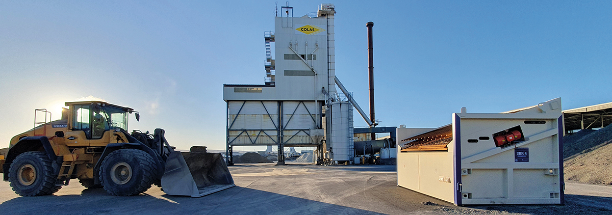 Die Aufgabenstellung indes ist die gleiche wie in deutschen Asphaltmischwerken. Es gilt, Brech- und Verschleißkosten zu senken, die Abhängigkeit vom Brecher bzw. Brechdienstleister zu verringern und die Aufbereitung und Abläufe generell flexibler zu gestalten. Im Einsatz ist das SBR4 mit einem Volvo 150 mit 3,2 m breiter und 4,3 m³ fassender Schaufel. Die Siebanlage wurde mit einem 25 x 25 mm und 45 x 45 mm Siebdeck zur Aufbereitung von Deck-, Binder- und Tragschicht-RC ausgeliefert.