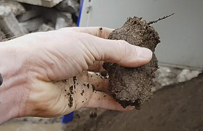 Beim Piloteinsatz stand die Absiebung von feuchtem, bindigem Mutterboden an. Die Anzahl der Sizer-Stangen wurde durch Herausnahme jeder zweiten halbiert, damit das schlecht fließende Material überhaupt zum Siebdeck gelangen konnte. Die Kombination aus Neigung und Drehrichtung des 2 kW starken Unwuchtmotors ermöglichte hier die entscheidende Einstellung. So wird eine lange Verweildauer des Siebguts auf dem Siebdeck erzeugt und das Überkorn zuverlässig separiert. »Das soll nicht heißen, dass es im Sommer nicht schneller und besser geht, aber wir zeigen, wie siebschwieriger Boden gesiebt wird«, betont Florian Schmellenkamp, Leiter Geschäftsentwicklung bei EAG Einfach Aufbereiten. t