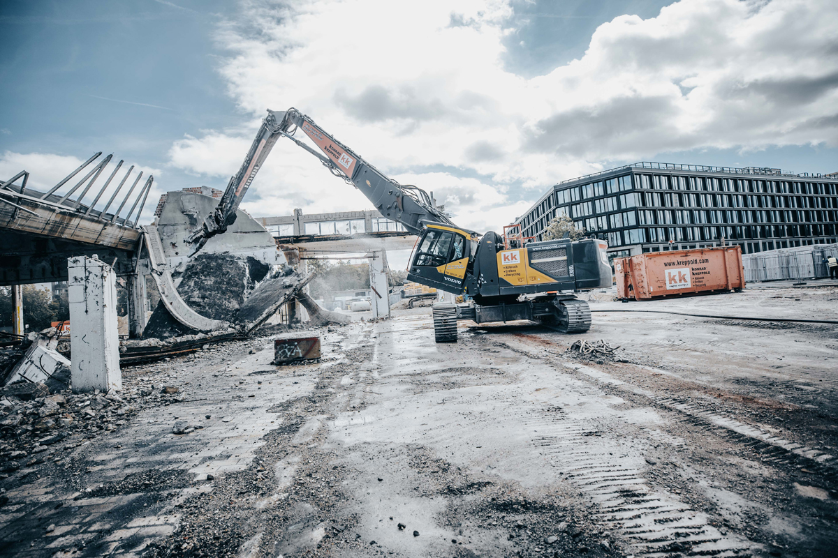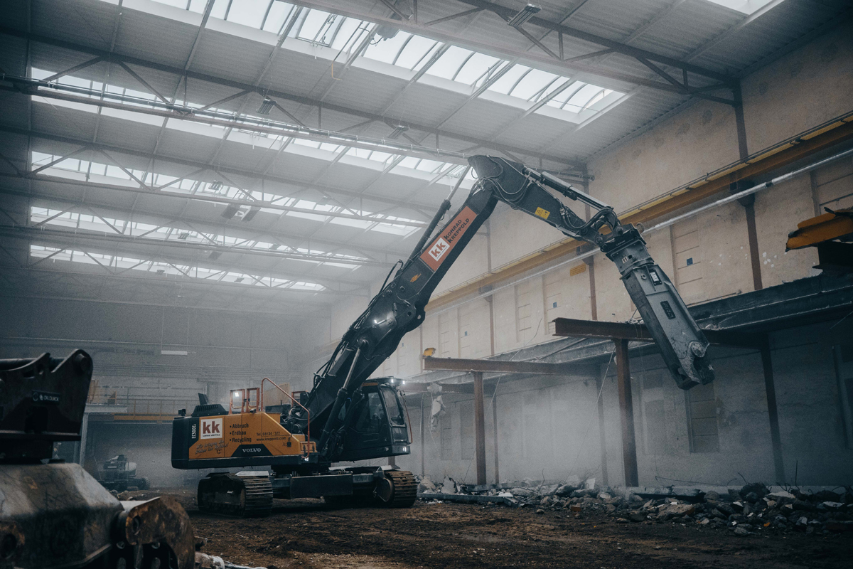 Wenn es auf der Baustelle richtig zur Sache geht, sind Präzision und Leistung gefragt. Für Konrad Kreppold, ein seit 55 Jahren auf Rückbau und Abbruch spezialisiertes Unternehmen mit Sitz in Odelzhausen, war klar: Ein Standardgerät reicht für ihre Arbeit nicht immer aus. Ziel war die Schaffung einer multifunktionalen Abbruch- und Erdbaumaschine, die sowohl den hohen Anforderungen an Reichhöhe, als auch an Flexibilität und Transportfähigkeit gerecht wird. Gemeinsam mit dem Umbauspezialisten Echle Hartstahl entstand aus einem Volvo EC300 EL ein individuell auf die Anforderungen zugeschnittener EHD 300 Abbruchbagger.