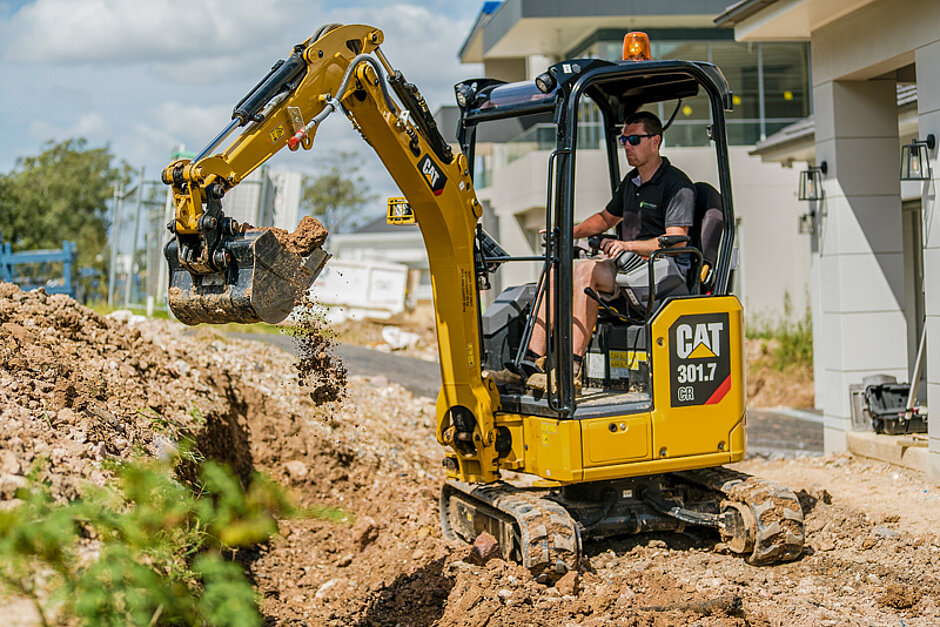 Das Grundmodell für die neue Baumaschine ist ein Minibagger aus der neuen Caterpillar-Baureihe 301.7. Die Abmessungen, Ausstattung und andere Eigenschaften entsprechen der Originalmaschine, die einen Dieselverbrennungsmotor hat. Für die Energiespeicherung wird eine evoTractionBattery mit 96 V Spannung von ecovolta eingesetzt. Mit der eingesetzten Batteriekapazität kann die Maschine je nach Einsatz drei bis vier Stunden autonom betrieben werden.