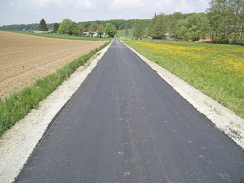 Besonders wichtig ist dieses Verfahren, wenn zum Beispiel flüssige Bindemitteladditive beigemischt und im Boden verteilt werden müssen, um die Wirkung des Zementgemisches zu verbessern.Nach diesen Arbeitsgängen wird der zur Verfestigung bearbeitete Straßenunterbau verdichtet und mittels Grader profiliert. Einige Tage nach der erfolgreichen Verfestigung des Straßenunterbaus mit dem HEN-System wurde eine 4 cm starke Asphalt-Verschleißdecke aufgezogen.