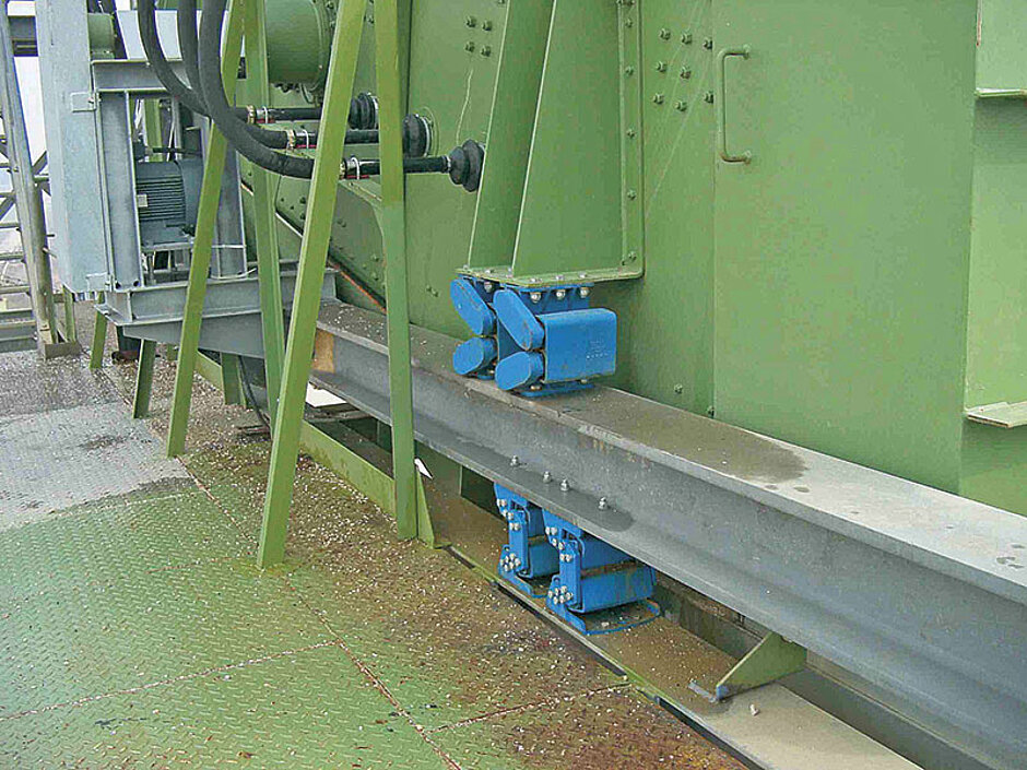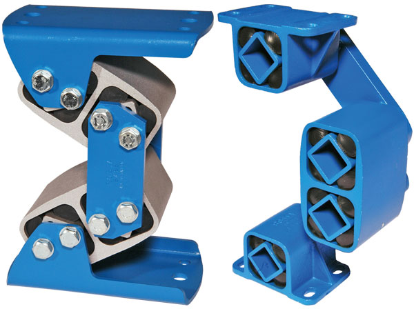 Bei sehr hohen, leicht konzipierten Stahlbau-Prozessinganlagen wird bei der Sieblagerung oft auch ein zusätzlicher, energieabsorbierender Gegenschwingrahmen unter die eigentliche Siebmaschine gestellt. Die Schwinglagerung des Siebes steht auf der ebenfalls elastisch gelagerten Gegenschwingmasse, was geringfügig die Schwingweite der Siebmaschine reduziert, jedoch einen Großteil der resultierenden, dynamischen Beschleunigung mittels Gegenbewegung abbaut. Erfahrungsgemäß wiegen diese Gegenschwingrahmen zwischen 50 % und 100 % der eigentlichen Siebmaschine. Aufgrund der großen Massenträgheit der Siebmaschine kompensiert die Gegenschwingmasse nur einen relativ kleinen Bruchteil der effektiven Schwingweite des Siebes.Rosta bietet neben der Niederfrequenz-Sieblagerung AB auch die hoch belastbaren Lagerungen AB-D für die Abstützung des Gegenschwingrahmens. Dabei müssen die Abstützungen der Gegenschwingmasse das Gewicht der Siebmaschine und des Gegenschwingrahmens tragen können. Wenn mehrere, sehr schwere Siebmaschinen auf demselben Prozessing-Deck arbeiten, empfiehlt es sich, Gegenschwingrahmen einzubauen. Zwei oder mehrere Siebmaschinen arbeiten (schwingen) nie synchron miteinander, was zu wechselseitigen Restkraft-Biegespannungen im Prozessing-Deck oder in der Arbeitsbühne führt. Nebst den für den Menschen unangenehmen Restkraftübertragungen auf den Boden, führen diese asynchronen Biegespannungen zu Materialermüdungen in der gesamten Bausubstanz.