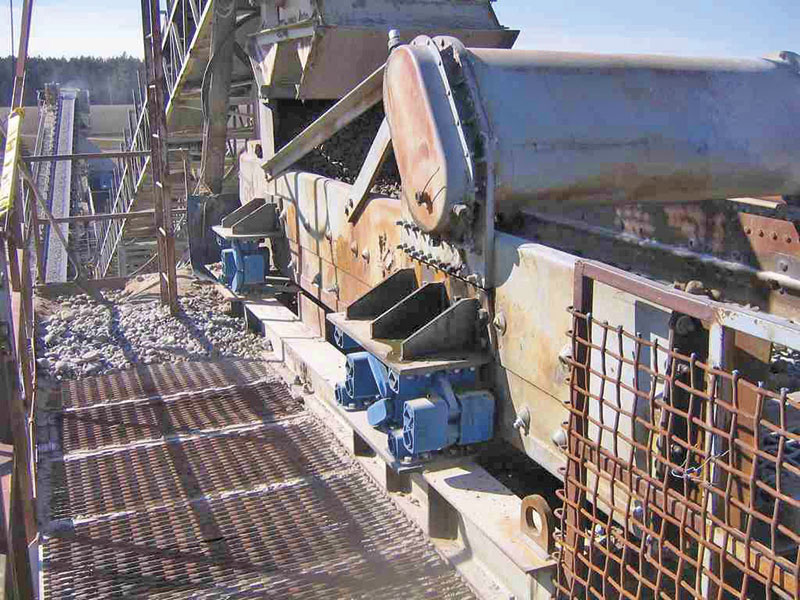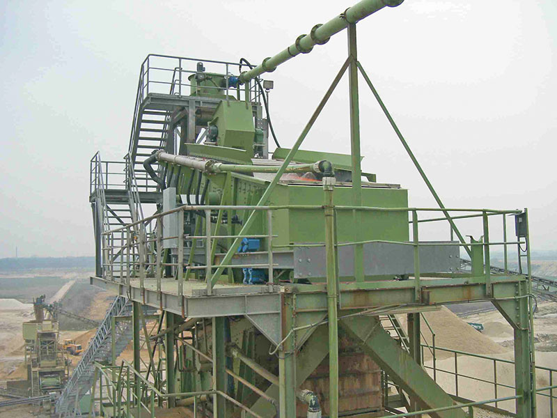 www.youtube.com/watch hohe Reaktionskräfte noch übermäßige Vibrationsübertragungen sind auf den sehr hohen Stahlstrukturen dieser Aufbereitungsanlagen erwünscht, führen sie doch zu Materialermüdungen in der Stahlstruktur und ungenauer Arbeitsweise der Folgemaschinen und Steuerungen. Weiter machen sie dem Bedienungspersonal den längeren Aufenthalt auf den verschiedenen Plattformen und Arbeitsbühnen unmöglich. Auf diesen filigranen Stahlstrukturen sind somit bei der Aufstellung von Sieben hochisolierende, möglichst reaktionsneutrale und den Auslauf kontrollierende Lagerungen gefragt. Hier bieten sich die Rosta-Schwingelemente des Typ AB mit halbscherenförmiger Lenkeranordnung an. Sie federn tief ein und bieten eine niedrige Eigenfrequenz von etwa 2 Hz, was Isolierwirkungswerte von bis 98 % der Erregervibrationen ergeben soll.Die Rasta-Lagerungen unterstützen die linearen oder elliptischen Siebbewegungen und generieren durch ihre Doppellenkerbauweise relativ wenig dynamische Steifigkeit, die als Restkraft in den Unterbau übertragen werden kann. Die Schwingelemente führen während des normalen Sieblaufes praktisch keine Verlustenergie ab (< 0,5 %). Während des Siebauslaufes, nahe des Resonanzfrequenzbereichs, beschreiben die beiden Schwingarme fünf bis sechs mal so große Auslenkungen, die in den Gummikörpern einen hohen Grad von Verlustarbeit (Hysterese) generieren. Die im Siebkasten verbleibende Restenergie wird somit innerhalb weniger Bewegungen gänzlich abgeführt, die Anlage steht still.Wirkungsvolle Reduzierung der Restkraftübertragung auf den Unterbau
