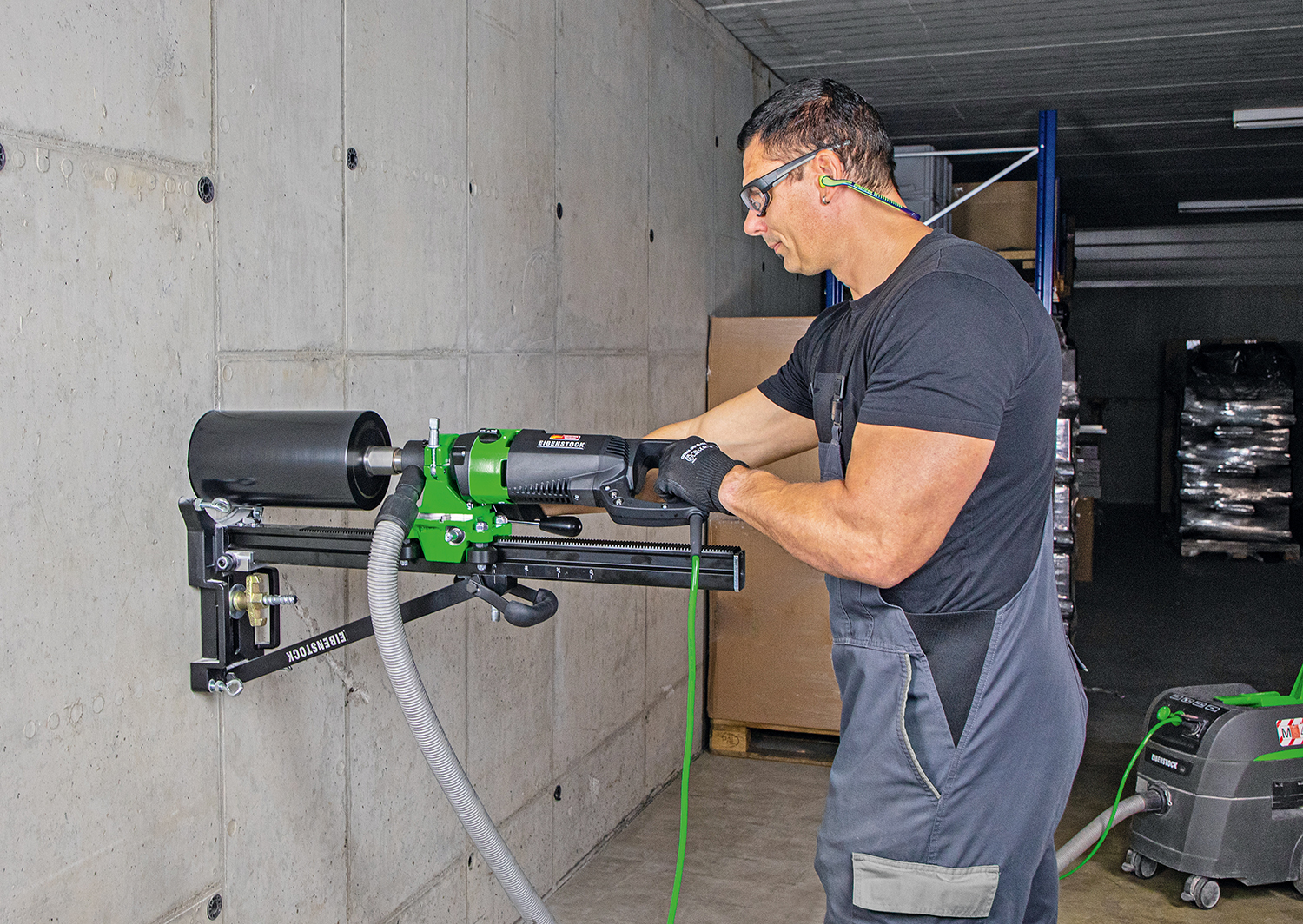 Beste Ergebnisse erzielt der Anwender laut Eibenstock im System mit dem Softschlag-Bohrständer BST 162 H sowie den IHT-Softschlag-Bohrkronen. Die ESD 162 sieht Eibenstock insbesondere als Problemlöser bei Bohrungen von harten Materialien in wasserempfindlichen Bereichen im Bestandsbau, wo eine Nassbohrung zu Folgeschäden führt.